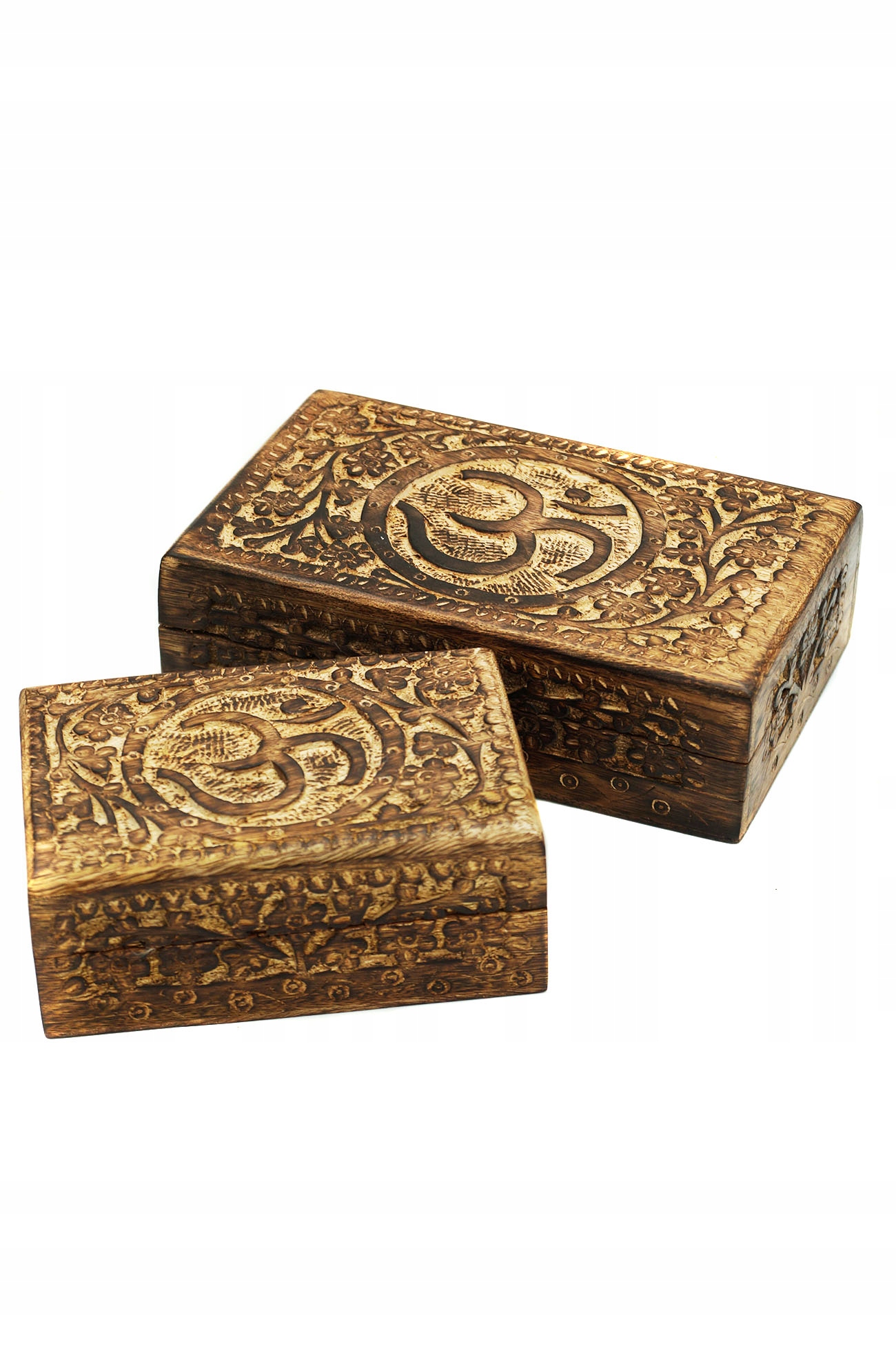 Дерев'яна коробка з символом Ом, вирізана вручну з дерева манго, на подарунок