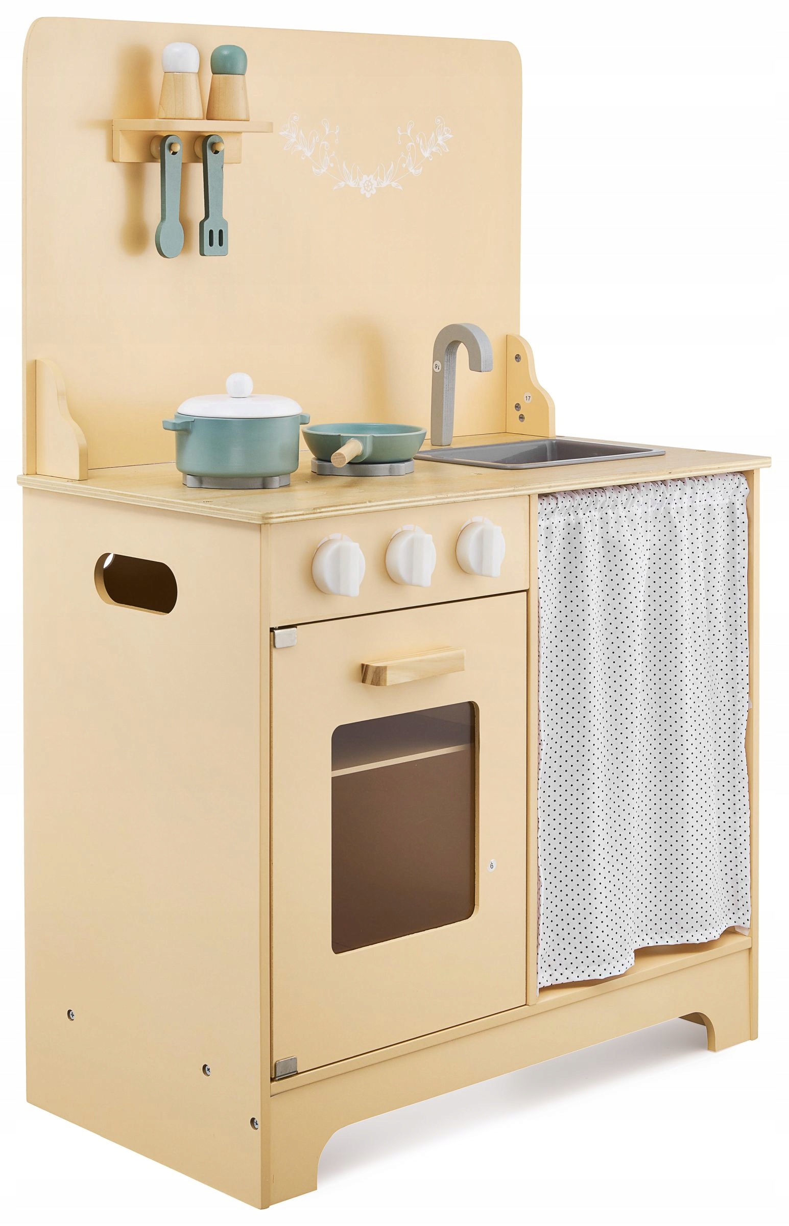 Кухня безкоштовна небезпечних елементів і гострих країв, і все це прикрашено тонкою графікою. Завдяки своїм стриманим і приємним для ока кольорам іграшка ідеально впишеться в дитячу або ігрову кімнату. Численні шафи, кухонне приладдя та милий фартух гарантують години чудового задоволення!