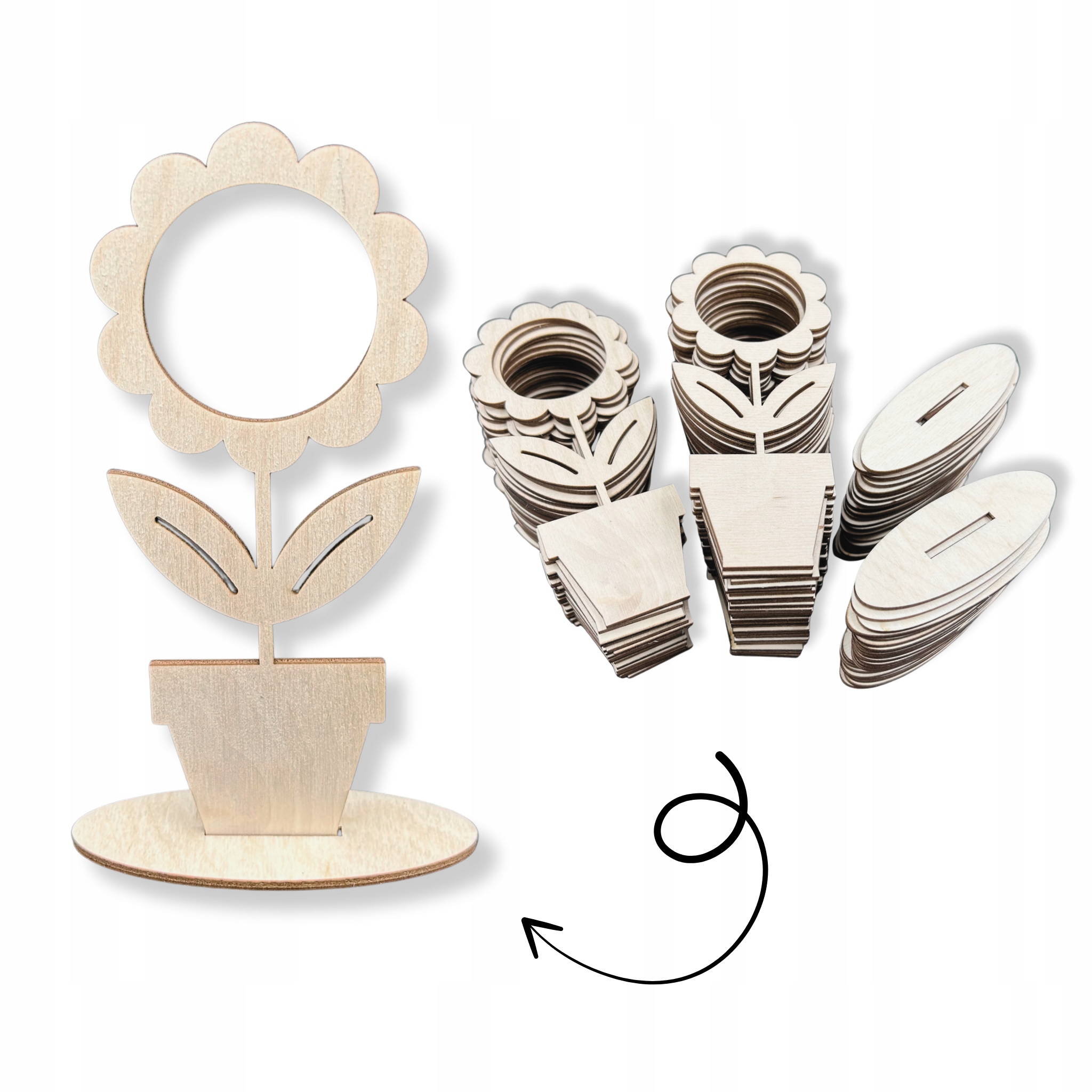 Дерев'яна квітка в горщику з отвором для фото, картини, набір 50 шт