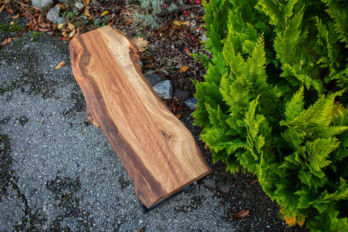 Дошка, встановлена на цій лаві, унікальна! Має красиву зернистість і колір. Щілини заповнені столярною шпаклівкою темного дуба.
