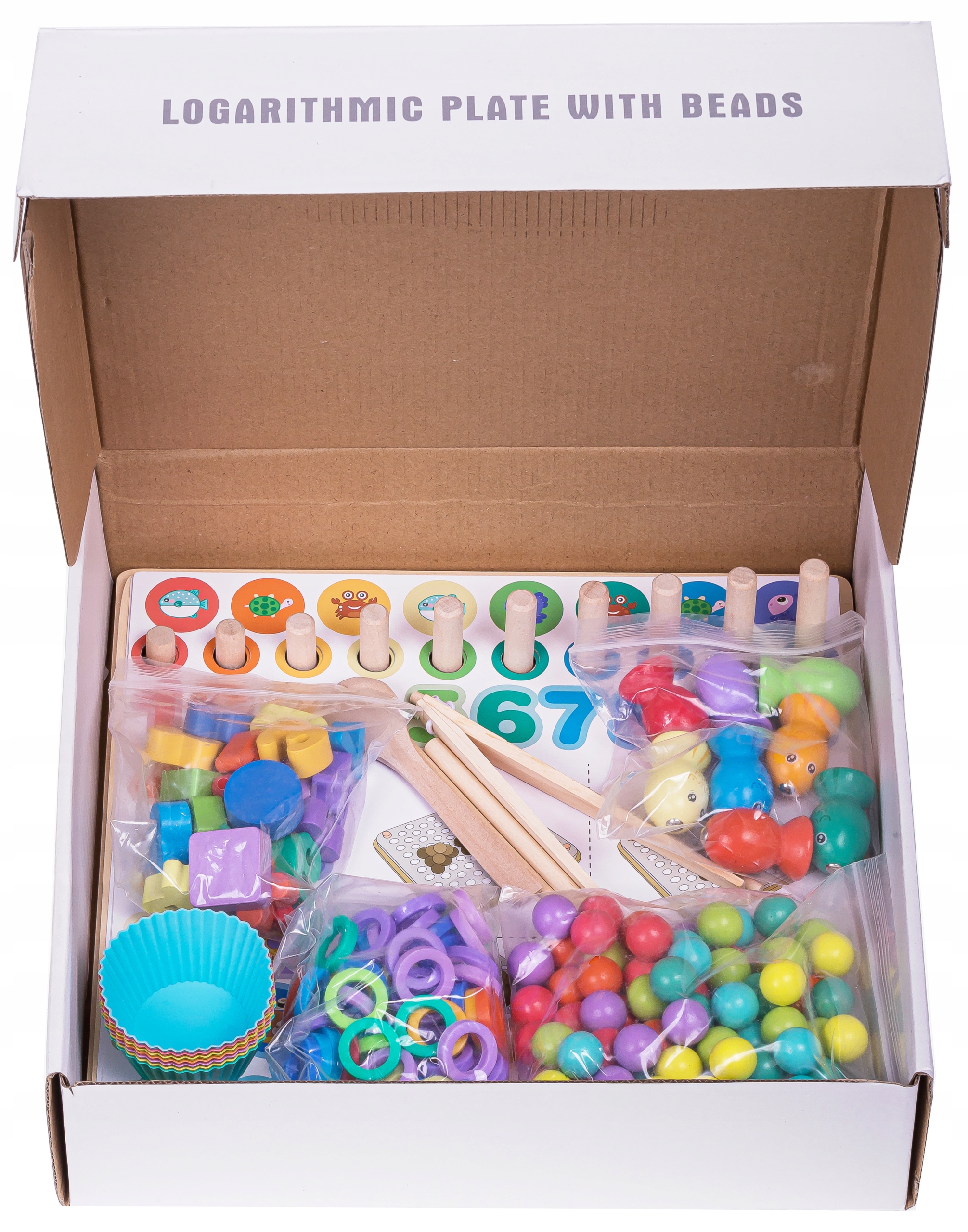 Іграшка складається з різних елементів, таких як кубики, намистини, цифри, рибки та кульки, які створюють різні сенсорні стимули. Ваша дитина матиме можливість вдосконалити навички рахунку та сортування, а також розвинути ручні та логічні навички. Кожен елемент був ретельно розроблений, щоб забезпечити задоволення та радість гри.