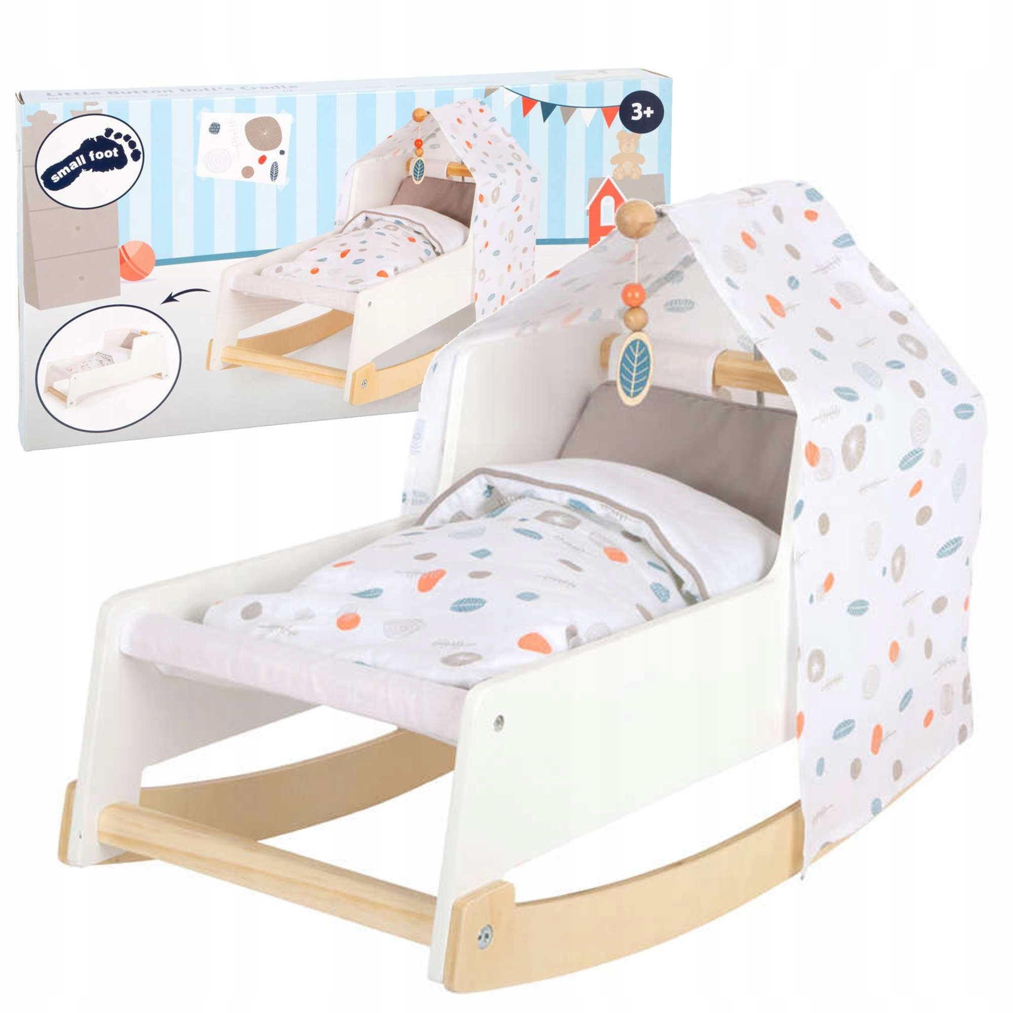 ta Красива біла колиска призначена для дітей віком від 3 років. Набір включає все, що потрібно, щоб влаштувати ляльку до сну. У нас є матрац, ковдра і подушка, а основа колиски зроблена, щоб вона могла гойдатися. Також у колиску є дах, який видаляється, і завдяки цьому ви можете перетворити колиску на стильну шезлонгу. Колиска має ляльок до 46 см