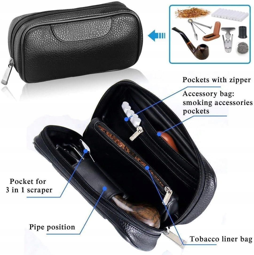 ✅ Комплект містить високоякісну шкіряну сумку, яка оснащена двома кишенями, ідеально підходить для зберігання люльок та аксесуарів для куріння. Ідеально підходить для подорожей, кемпінгу та використання на відкритому повітрі.