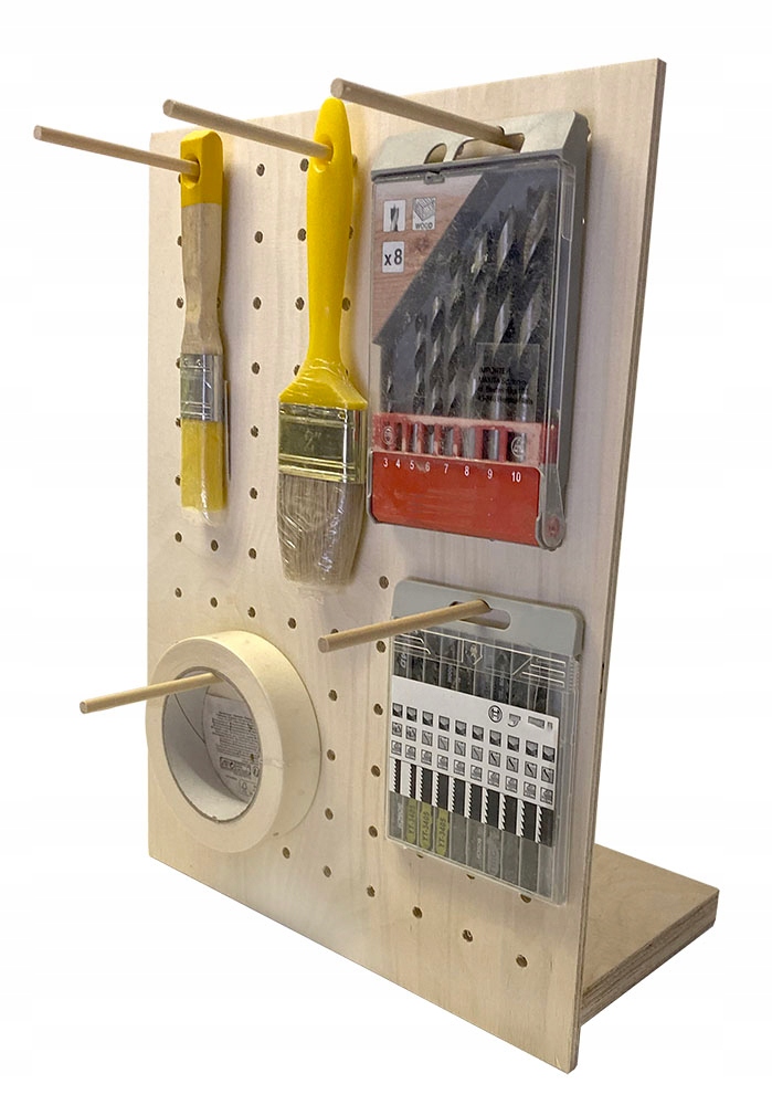 Завдяки своїй конструкції дисплей можна використовувати для представлення різноманітних товарів. Завдяки великій кількості отворів ви зможете регулювати місце підвішування виробів відповідно до вашої ідеї та потреб.