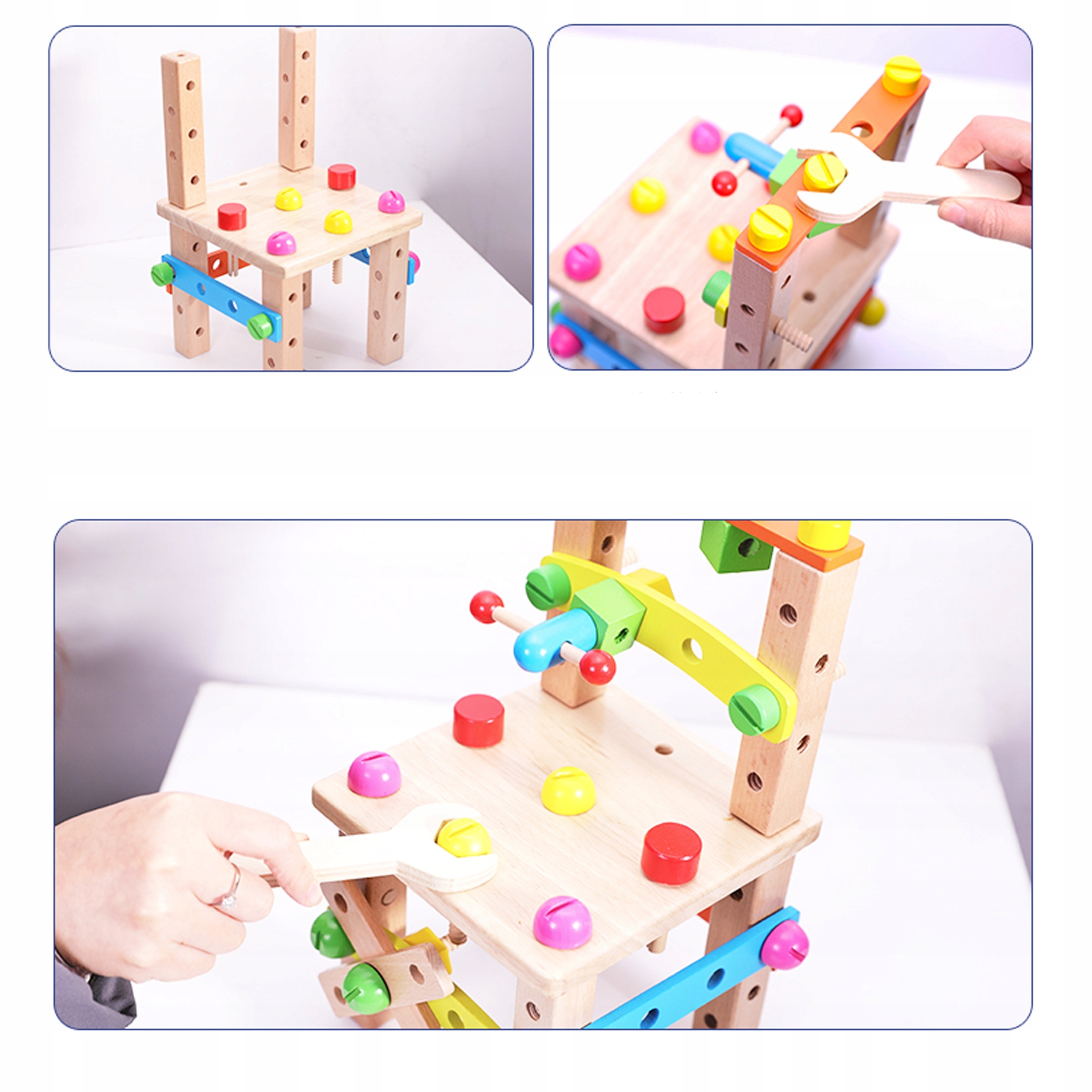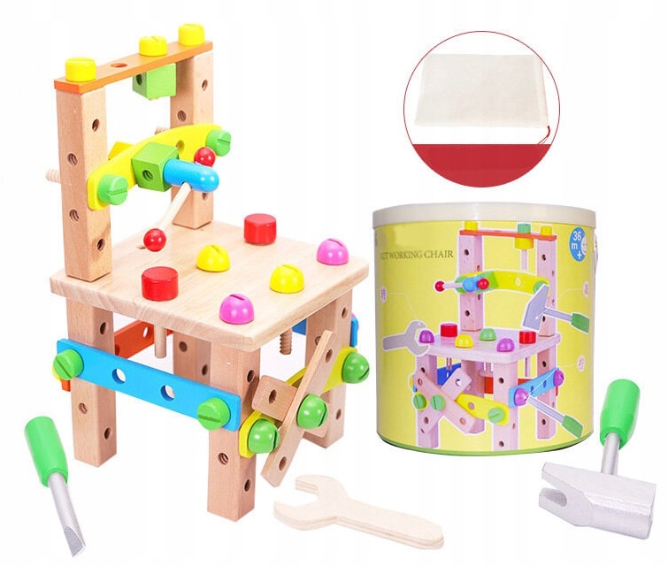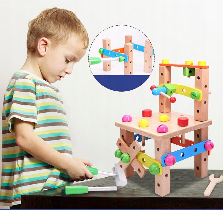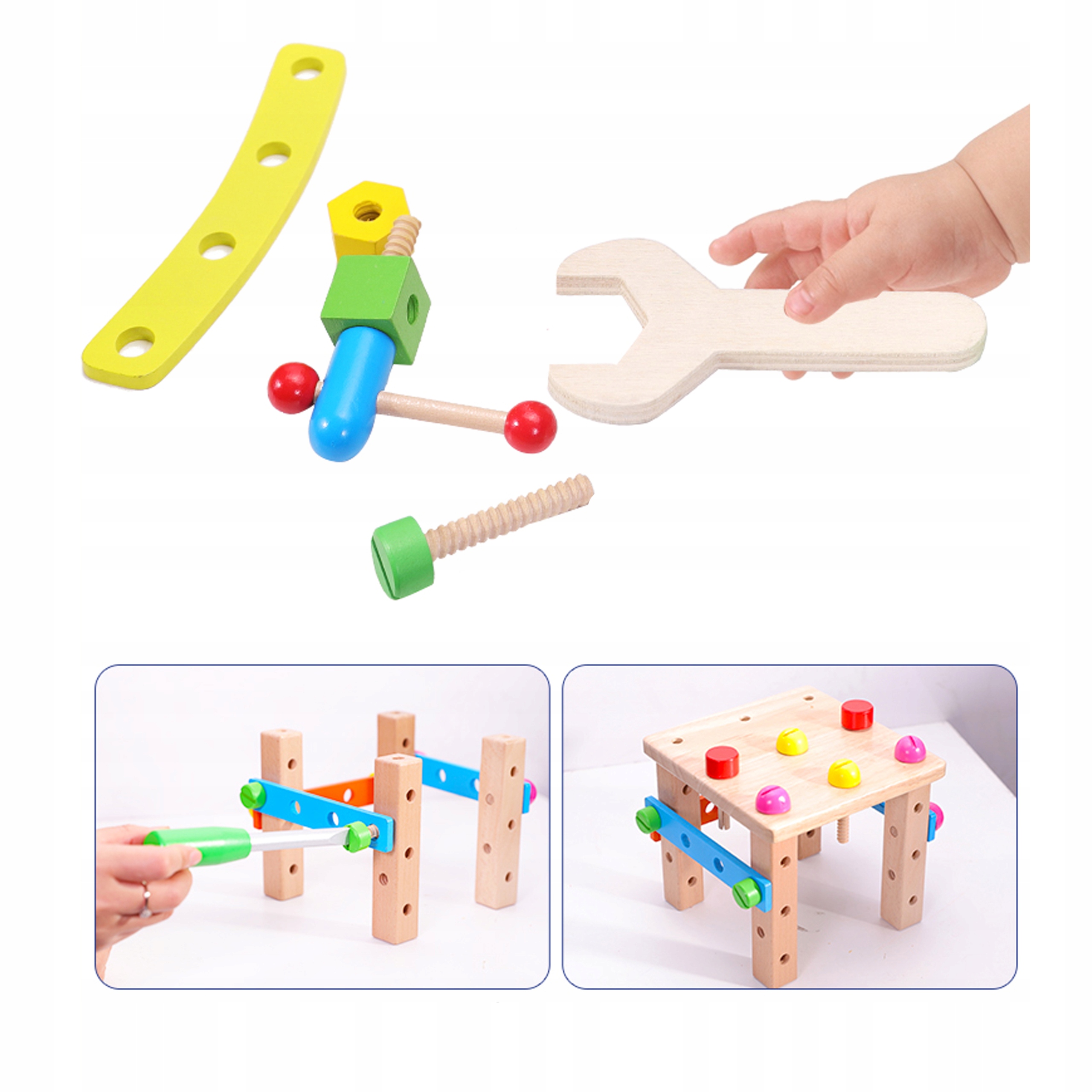 Класний дерев'яний набір інструментів та елементів для маленьких ентузіастів DIY та роботи по дому. .