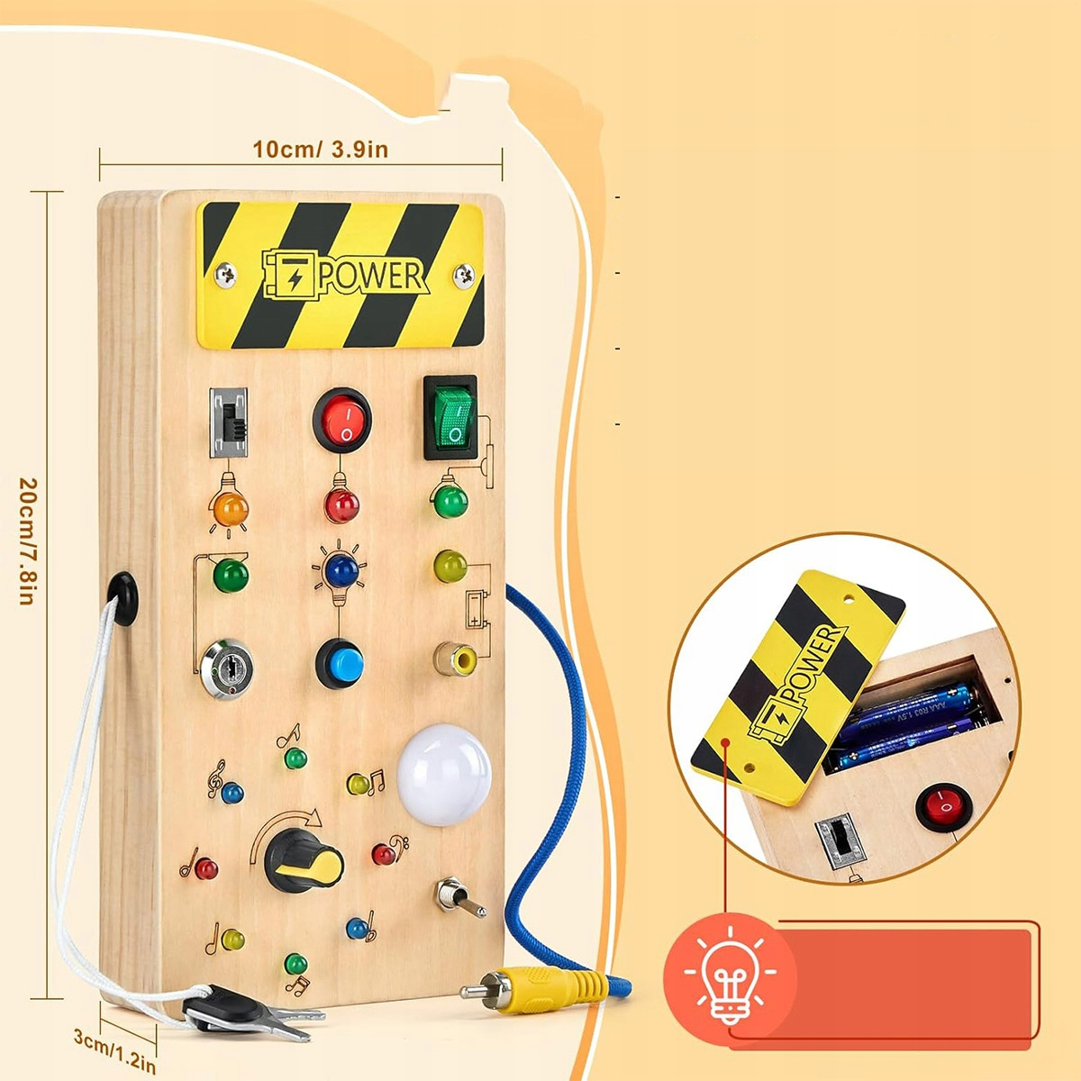 ДЕРЕВ'ЯНА МАНІПУЛЯЦІЙНА ДОШКА MONTESSORI LED ВИМИКАЧ ДЛЯ ДІТЕЙ 3+