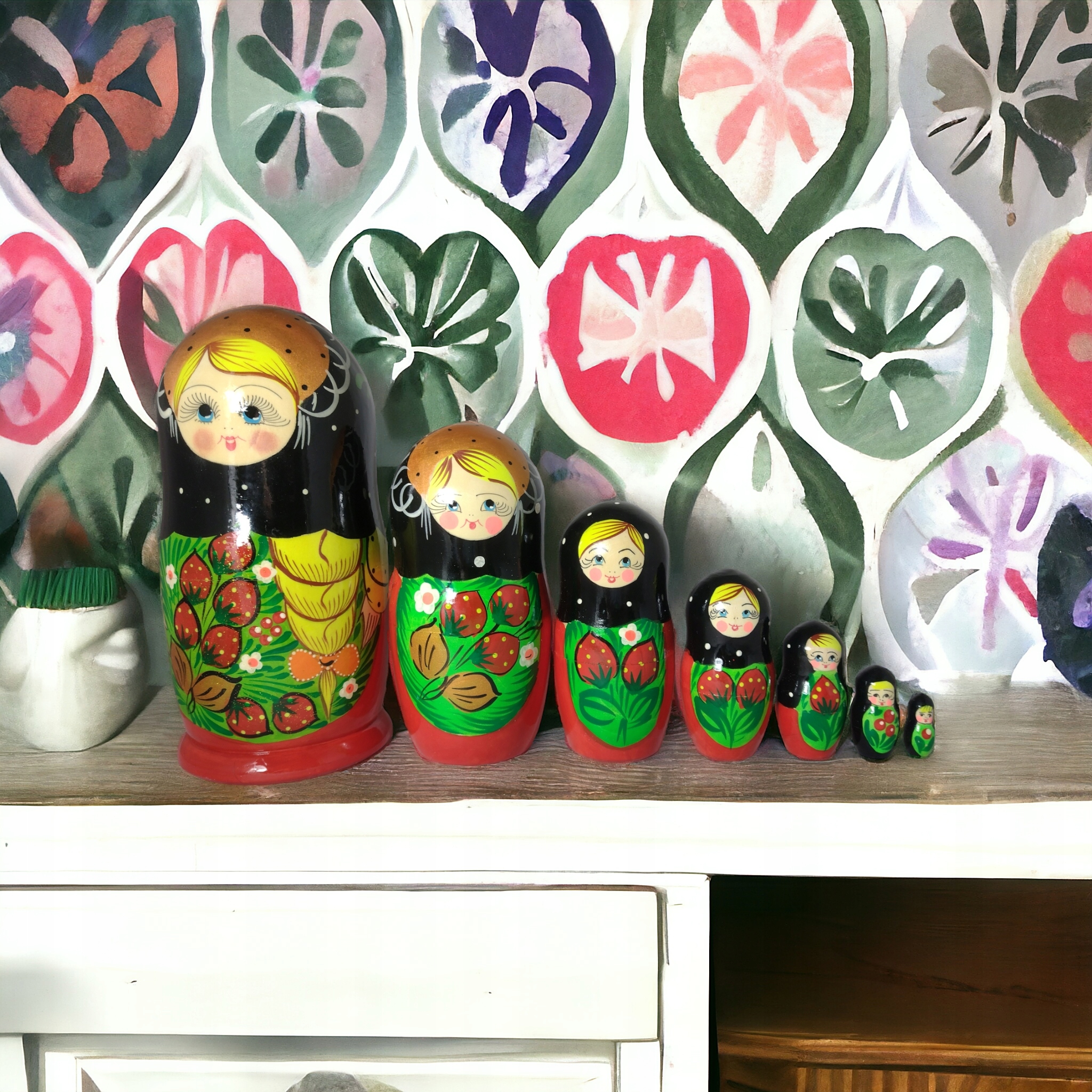 Дерев'яна Матрьошка Бабушка 7в1 20 см полуниця ручний розпис