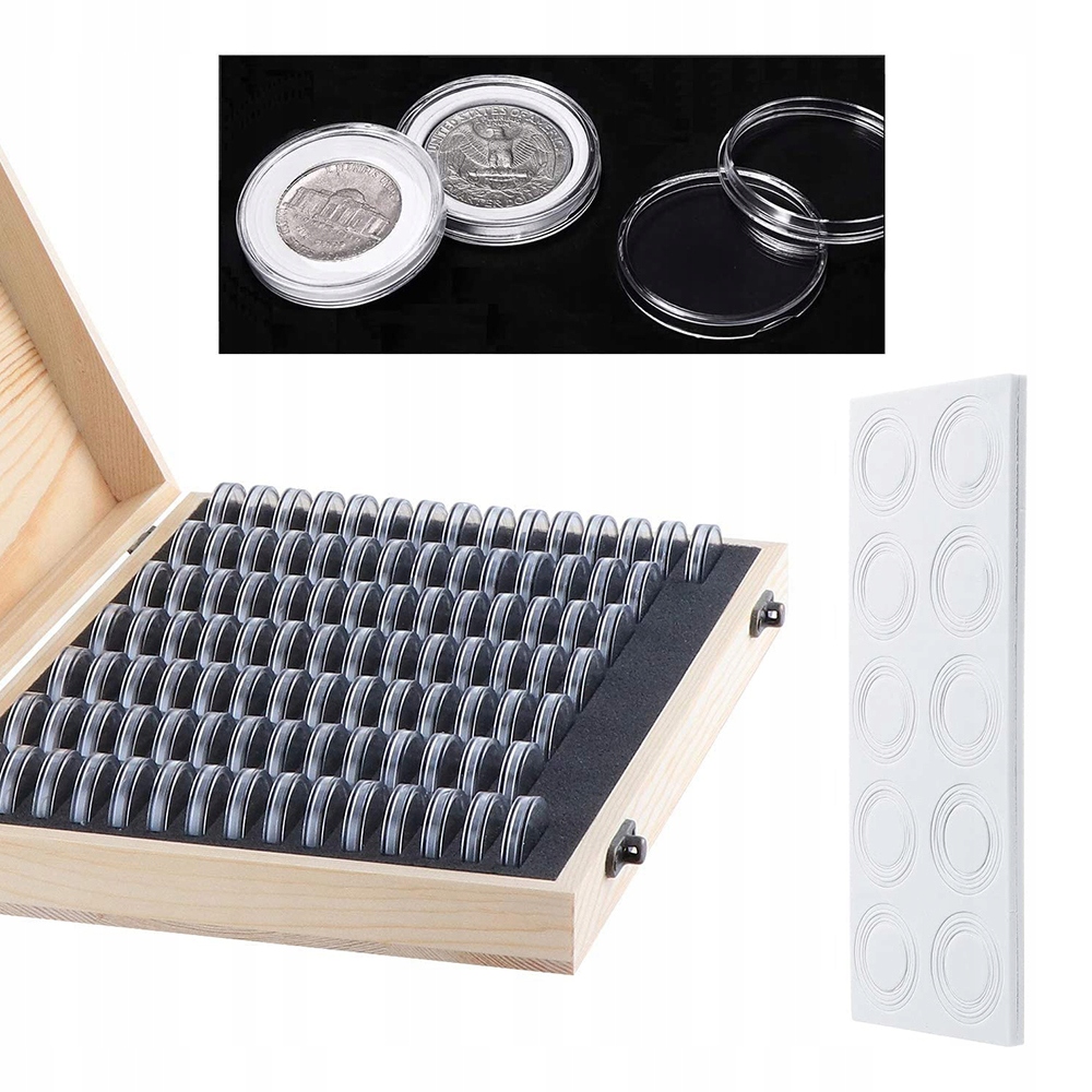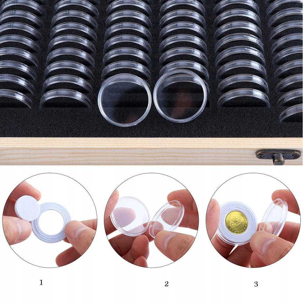 - 💰 - Коробка для зберігання монет постачається зі 100 відповідними печатками EVA. Кругле та зносостійке внутрішнє кільце EVA регулюється, тож його можна розрізати на 18 мм/20 мм/23 мм/25 мм/27 мм/30 мм відповідно до розміру вашої монети.