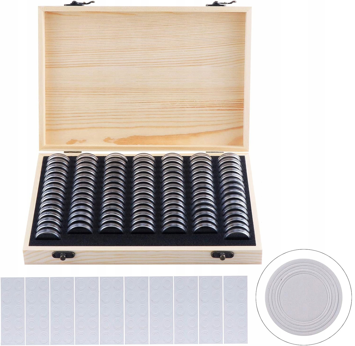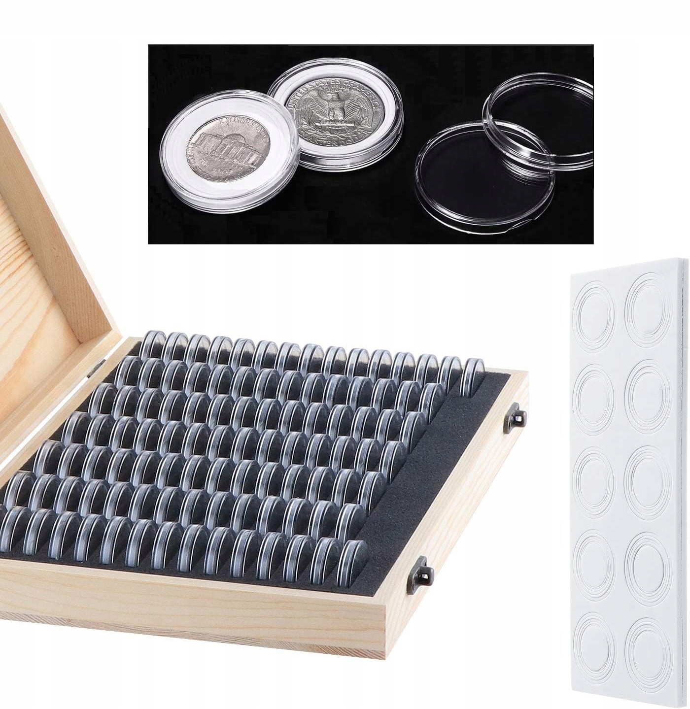 🪙 Дерев’яна коробка для зберігання монет:Розмір коробки для зберігання становить приблизно 280x195x45 мм, виготовлений із соснової деревини преміум-класу для зберігання 100 пластикових капсул для монет. Прозорі капсули для монет дозволяють легко зберігати, переглядати та обмінювати монети.