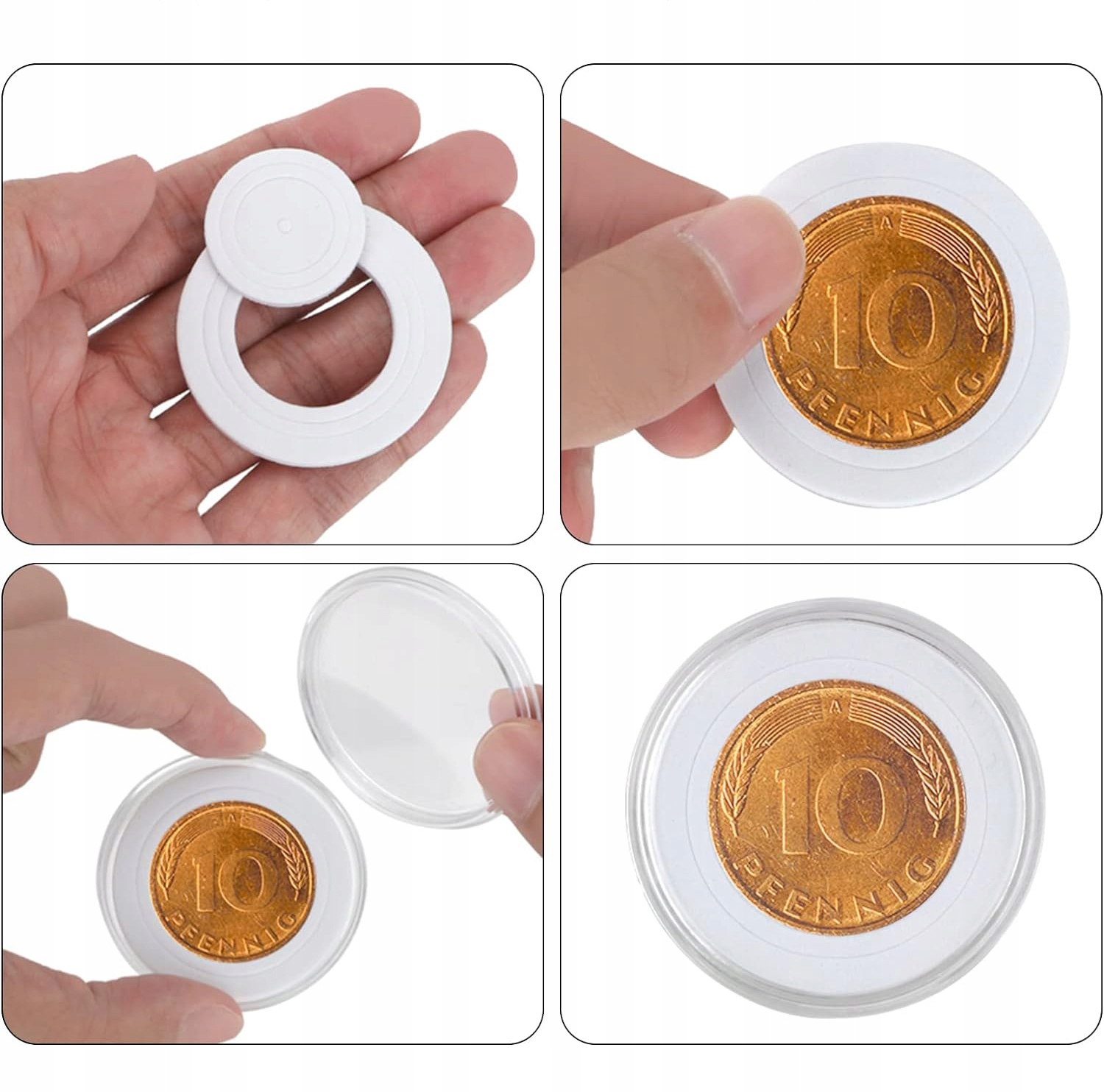 🪙 Регульована прокладка з пінопласту EVA:Наповнена 100 відповідними прокладками з піни EVA, кругле та зносостійке внутрішнє кільце EVA регулюється, його можна регулювати відповідно до розміру монети для 18 мм/20 мм/23 мм/25 мм/27 мм/30 мм Прокладки з піни EVA допомагають утримувати монети на місці та добре захищають монети, запобігаючи їх ковзанню та дряпання.