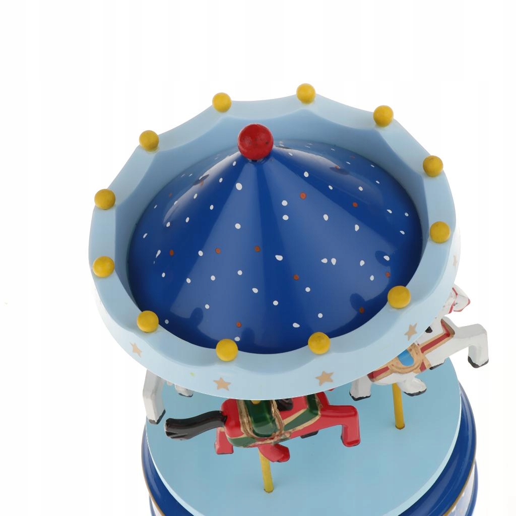 Дерев'яна музична шкатулка карусель синього кольору з крапкою