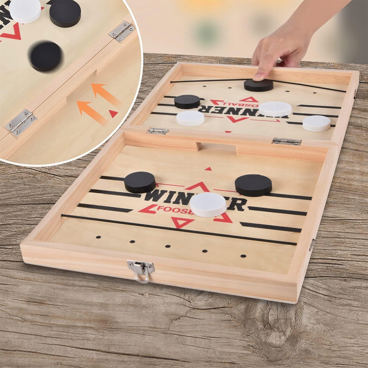 Спортивна настільна гра для 2 гравців, прості правила, ідеально підходить для обговорення в групових та соціальних зборах з родиною та друзями! Ви можете грати зі своєю дитиною та практикувати його координацію та концентрацію очей.
