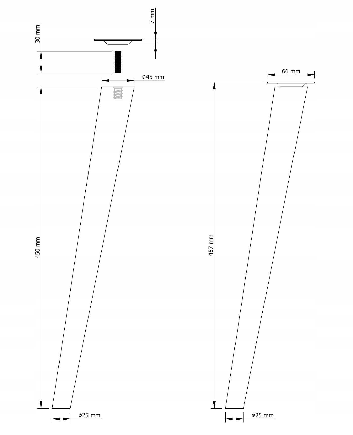 РОЗМІР: FI 45 ММ ВЕРХУ / FI 25 ММ ВНИЗУ, 45 СМ ВИСОТА