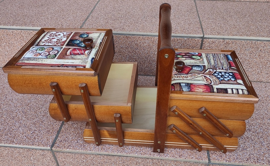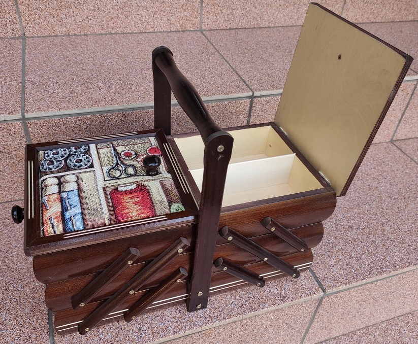 Коробка ідеально підходить для зберігання ниток та інших виробів. галантереї, її також можна використовувати для зберігання прикрас, косметики та інших дрібниць.
