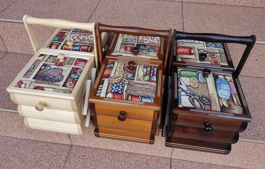 Ніткорізні машини - дерев'яні ящики, оздоблені матеріалом ручної роботи.