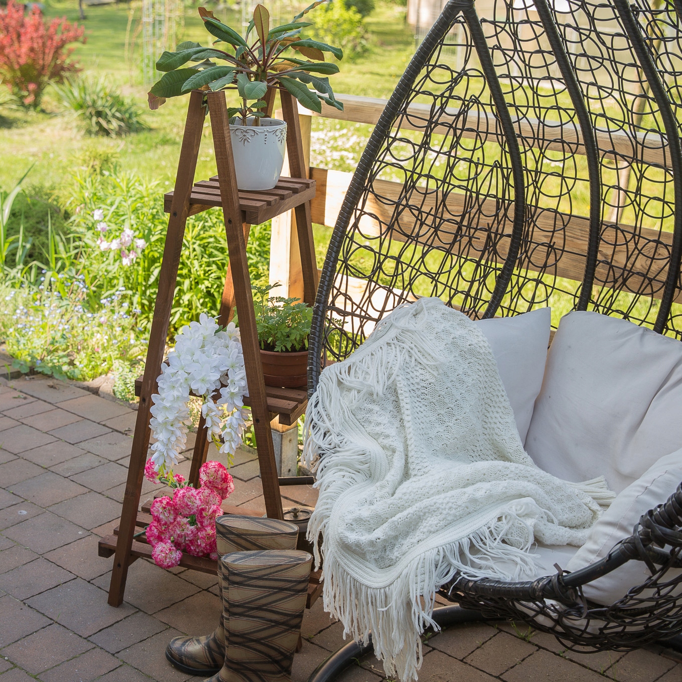 ✅ Кожна з трьох полиць може витримати навантаження до 25 кг. Це означає, що ви можете вільно виставляти на них свої улюблені рослини та прикраси, не турбуючись про їхню безпеку.
