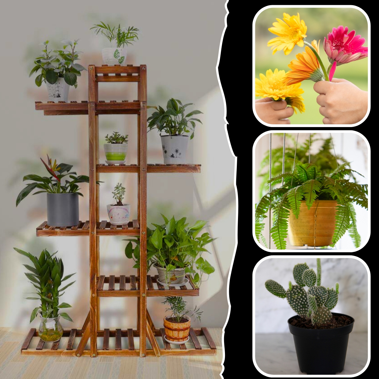 Мрієте про красиву та вражаючу рослинну композицію? Наша велика містка підставка для квітів — саме те, що вам потрібно! Незалежно від того, чи хочете ви прикрасити балкон, терасу, сад або інтер'єр свого будинку, на нашому стенді розмістяться всі ваші улюблені рослини. Забудьте про обмеження простору - наша підставка для квітів розроблена для розміщення великої кількості квіткових горщиків. Завдяки цьому ви можете створювати ефектні рослинні композиції, додаючи шарму та життя будь-якому місці, де ви його розмістите.