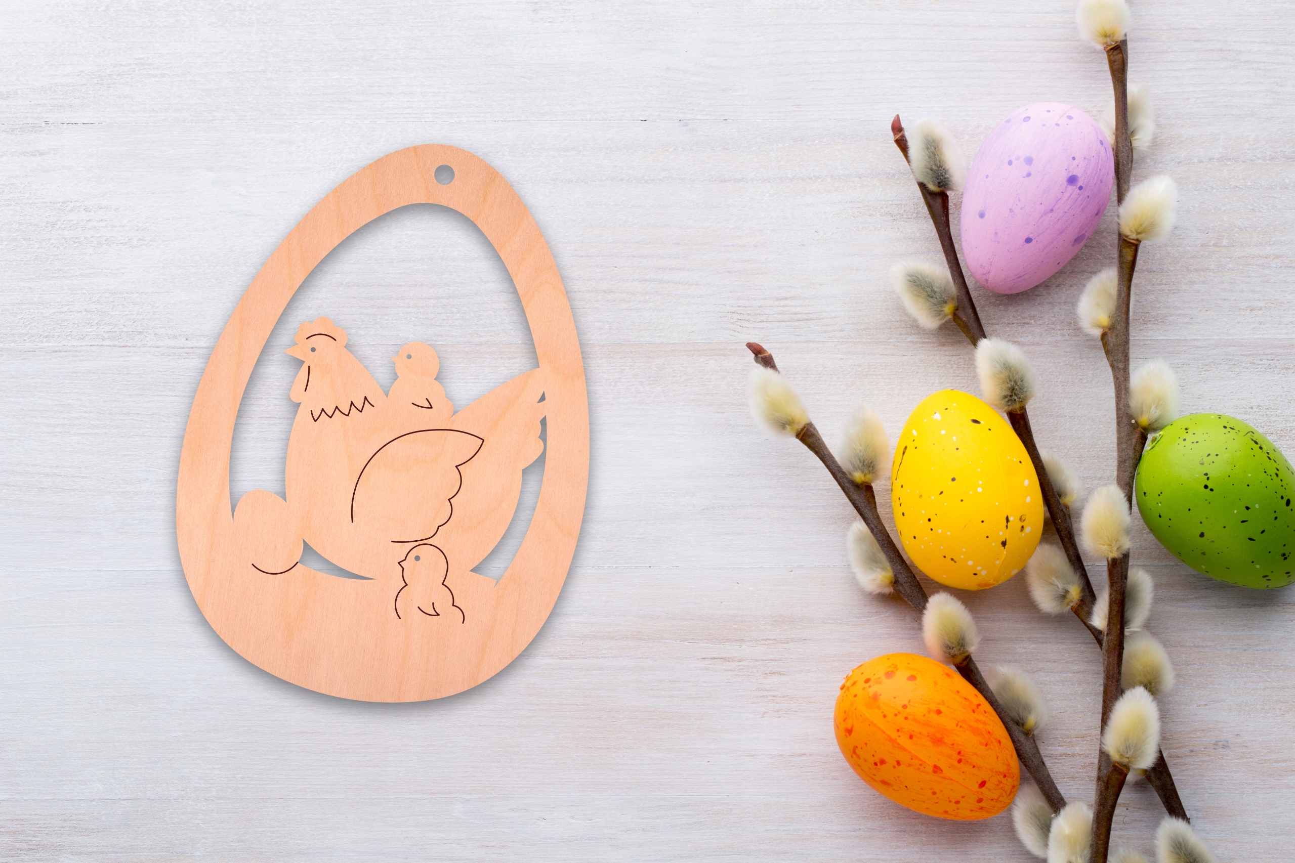 Дерев'яна підвіска ВЕЛИКДЕНЬ, писанка, яйце, курка