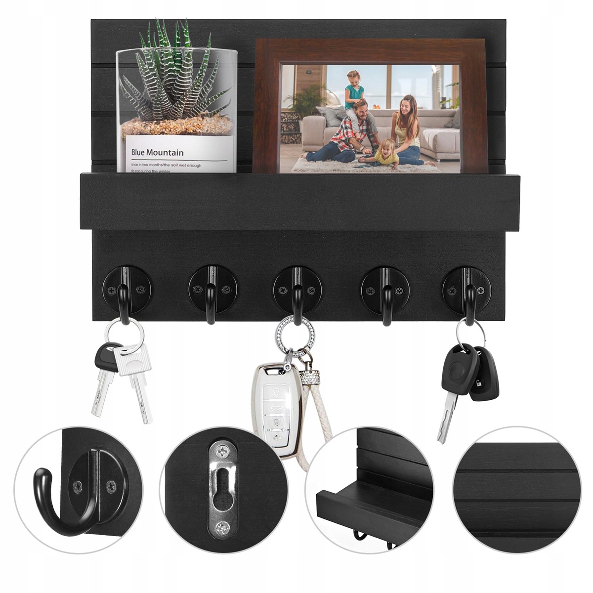 Дерев'яна підвісна полиця з 5 гачками для клавіш до передпокою