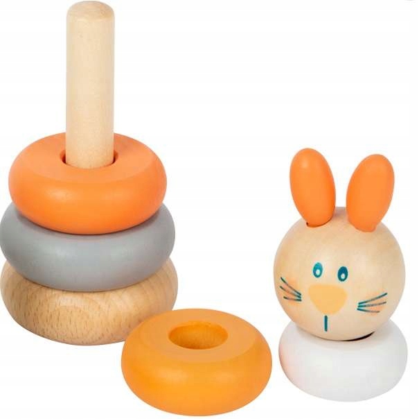 Виготовлений із дерева пазл у формі різнокольорової вежі — чудова іграшка для дітей. Дитина розставляє кружечки на дерев'яній паличці від найбільшого до найменшого. Останнім шматочком головоломки є голова милого усміхненого кролика. Гра «Будівництво вежі» — чудовий тренінг для розуміння кольорів, форм і розмірів.