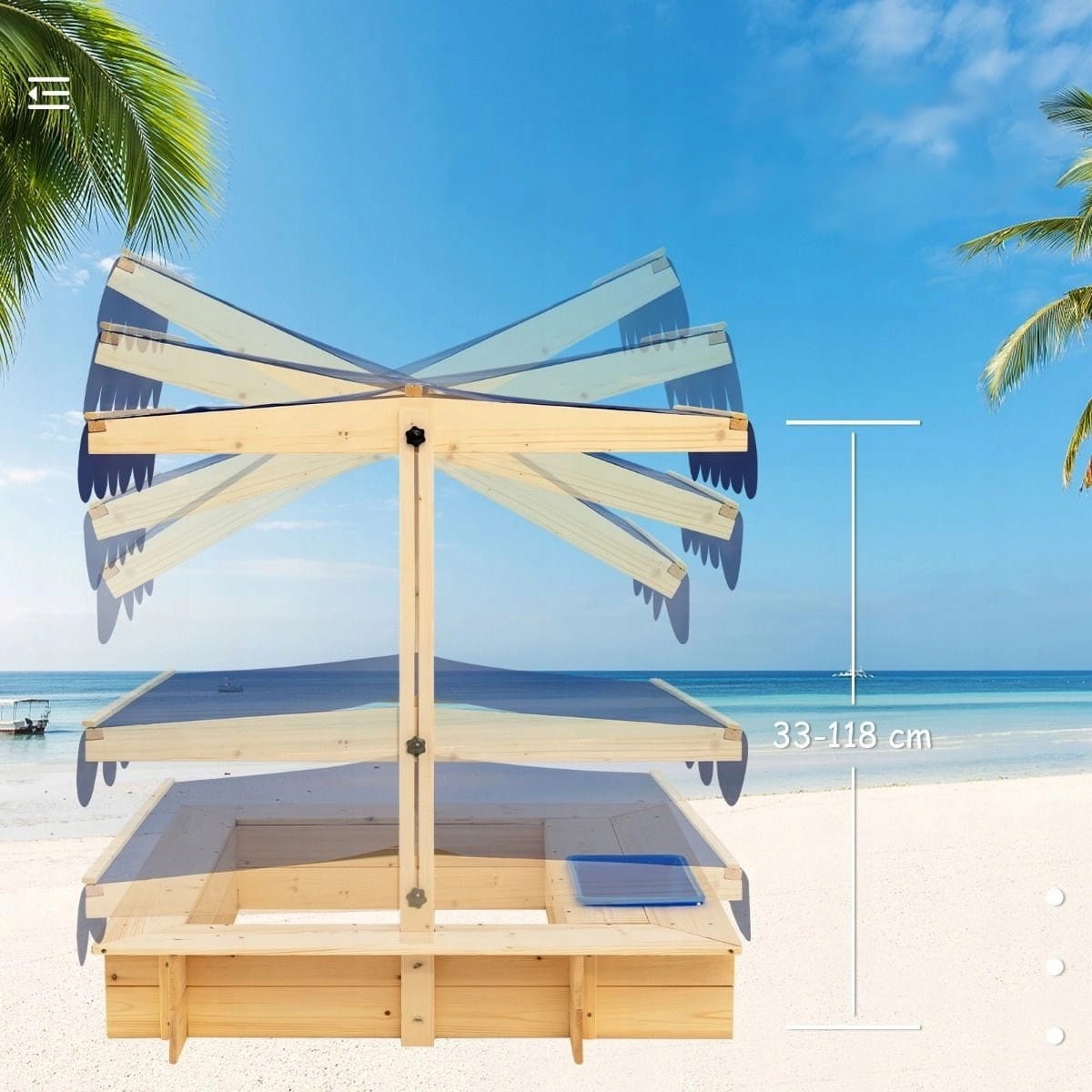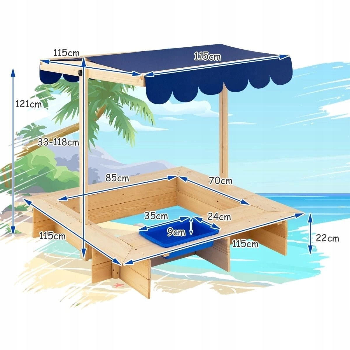 ДЕРЕВ'ЯНА ПІСЧНИЦЯ З ВЕРХОМ 115 х 115 х 121 см ПІСОК 180 кг