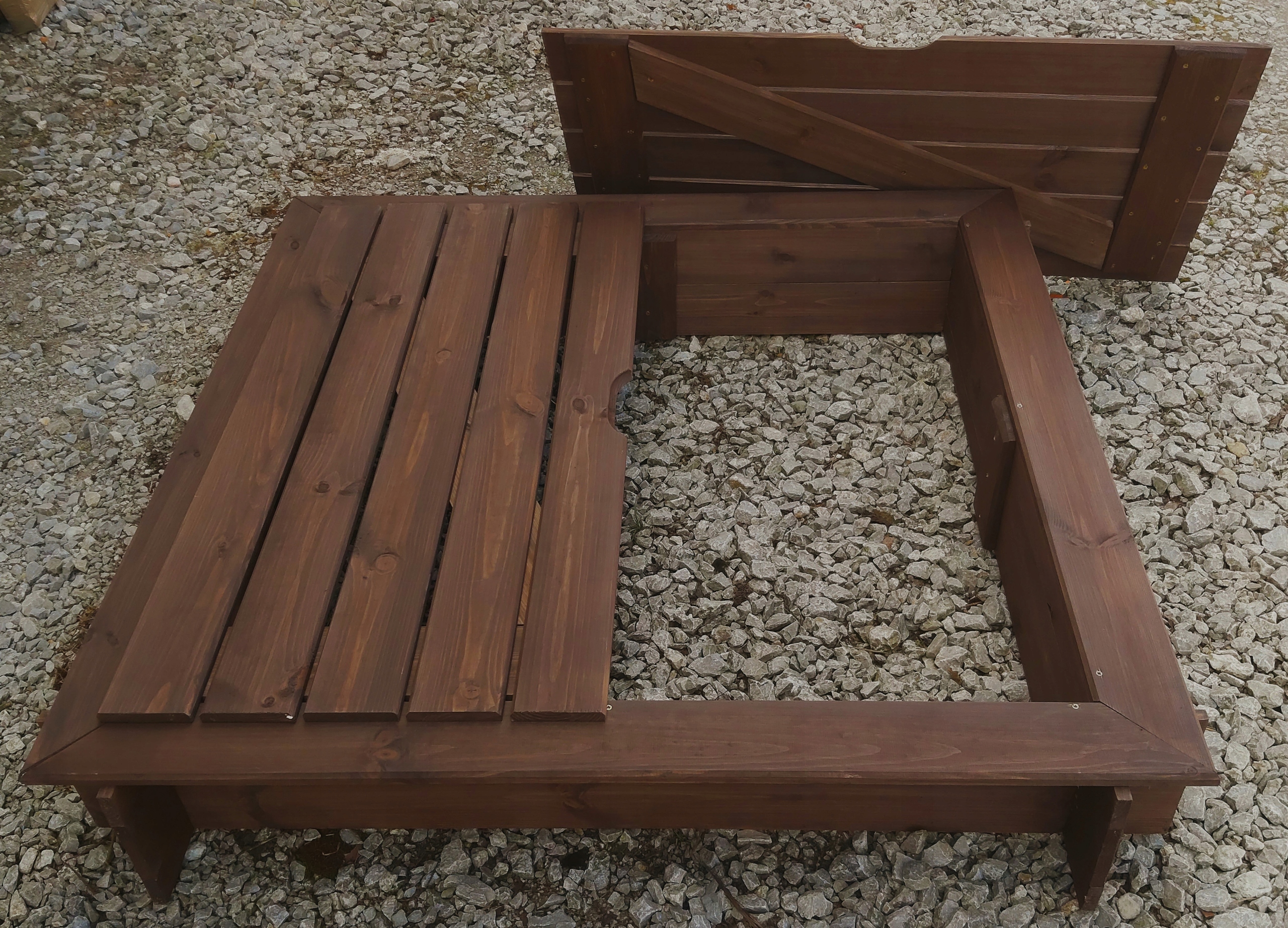 - дві кришки для пісочниці, розміри 104 см х 52 см (вже прикручені!)