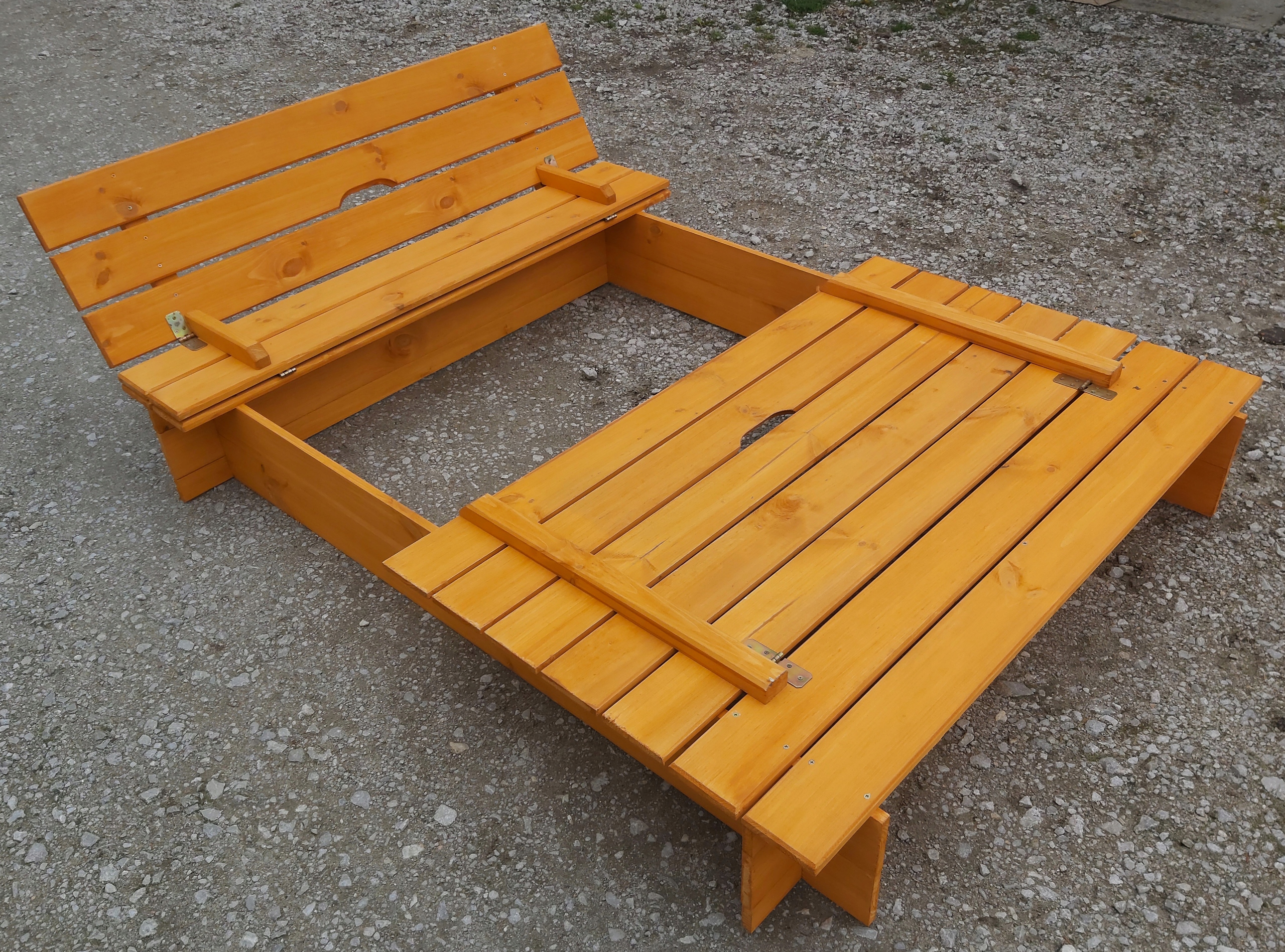 Предметом пропозиції є дерев'яна пісочниця з просоченням розміром 150 см на 120 см, оснащена кришкою з двох частин, яка розкладається у лави, виготовлена з високоякісної полірованої деревини сосни, висушеної в професійній машині. сушарка. Ручна робота з високою точністю. Пісочниця забезпечить вашій дитині багато годин безпечних ігор і, отже, ідеально впишеться в декор вашого саду.