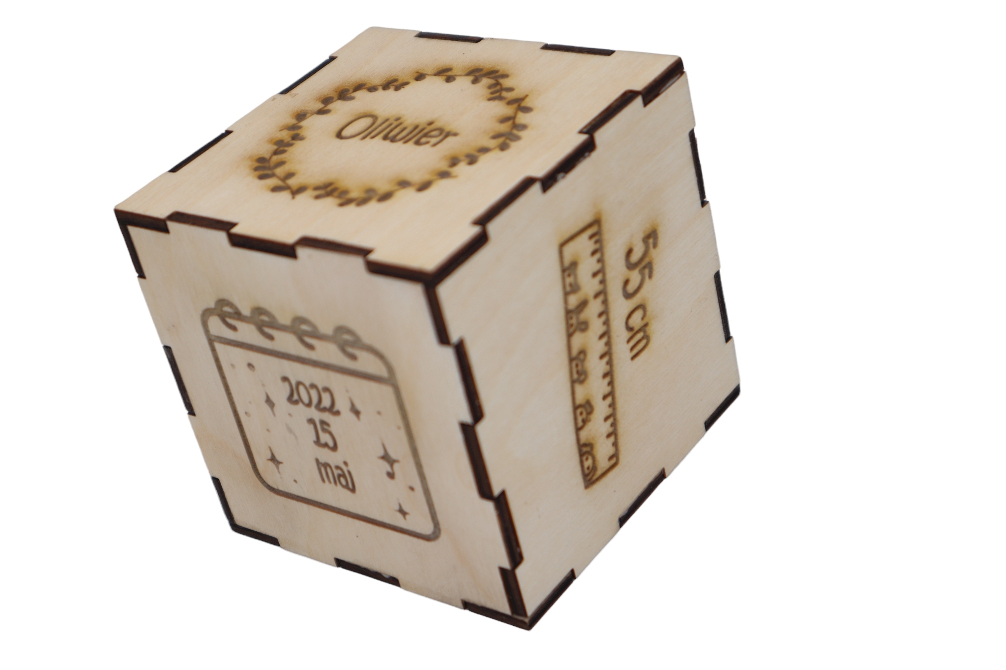 Всі дані про народження в одному місці в стильному дерев'яному кубі, який чудово прикрасить дитячу кімнату і буде унікальним сувенір.