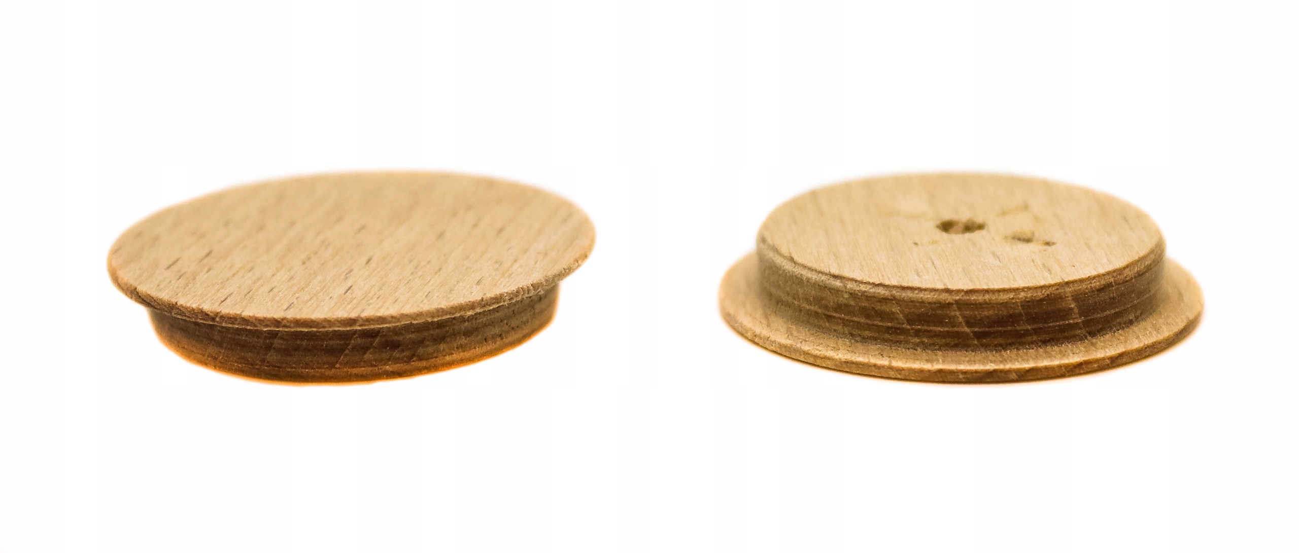 Найбільшою перевагою плоских заглушок є те, що зерна деревини ЛЕЖАТЬ, тобто розташовані вздовж площини заглушки. Завдяки цьому їх гладка та полірована поверхня вбирає лак або плями так само, як і поверхня матеріалу з ковпачками.