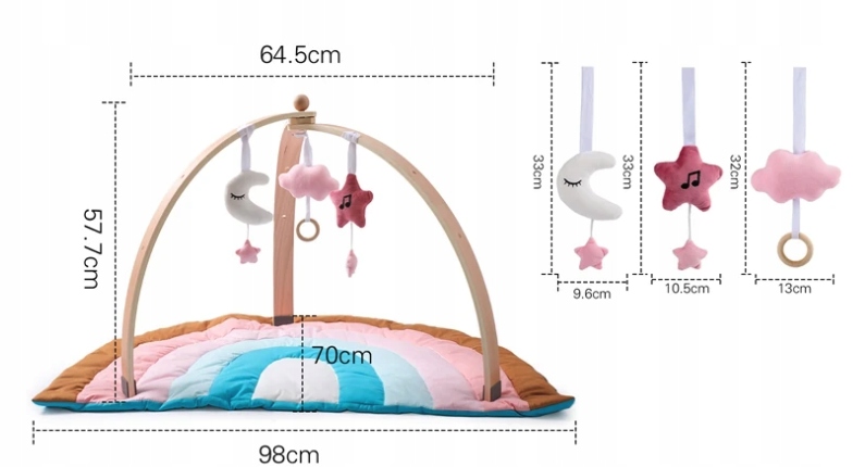 У набір входять 3 підвісні іграшки, якими ваша дитина може грати. Вони мають привабливу форму. Крім того, вони підтримують моторний розвиток і забезпечують сенсорну стимуляцію.