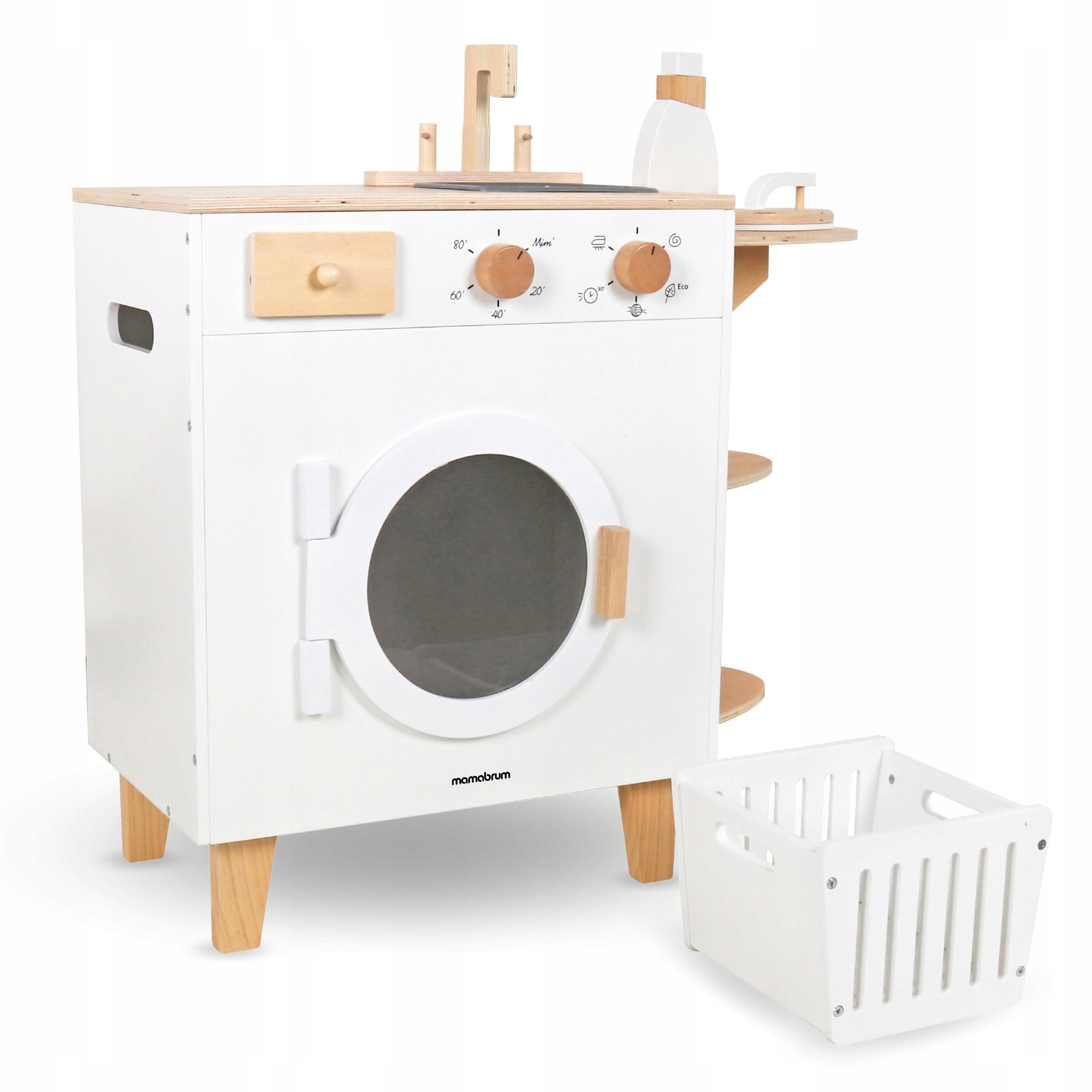 Дерев'яна пральна машина XXL - З залізом, кошику, мийкою - миття Монтессорі