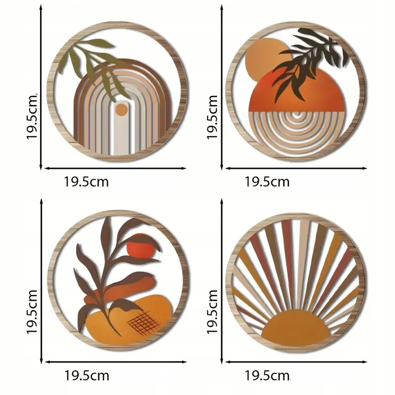 Набір із 4 предметів красивих дерев’яних настінних декорацій універсальних розмірів 20 см х 20 см.