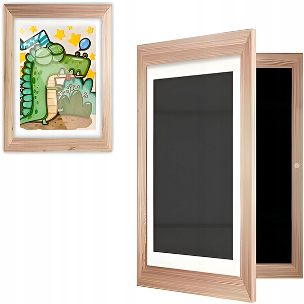 - Два режими підвішування: рамка обладнана горизонтальним і вертикальним гачком для підвішування, тому ви можете повісити свої роботи вашої дитини як в портретному, так і в альбомному форматах. Це робить його універсальним і простим у використанні в будь-якій кімнаті будинку. Він також має опору, яка дозволяє розмістити рамку на меблевій стійці.