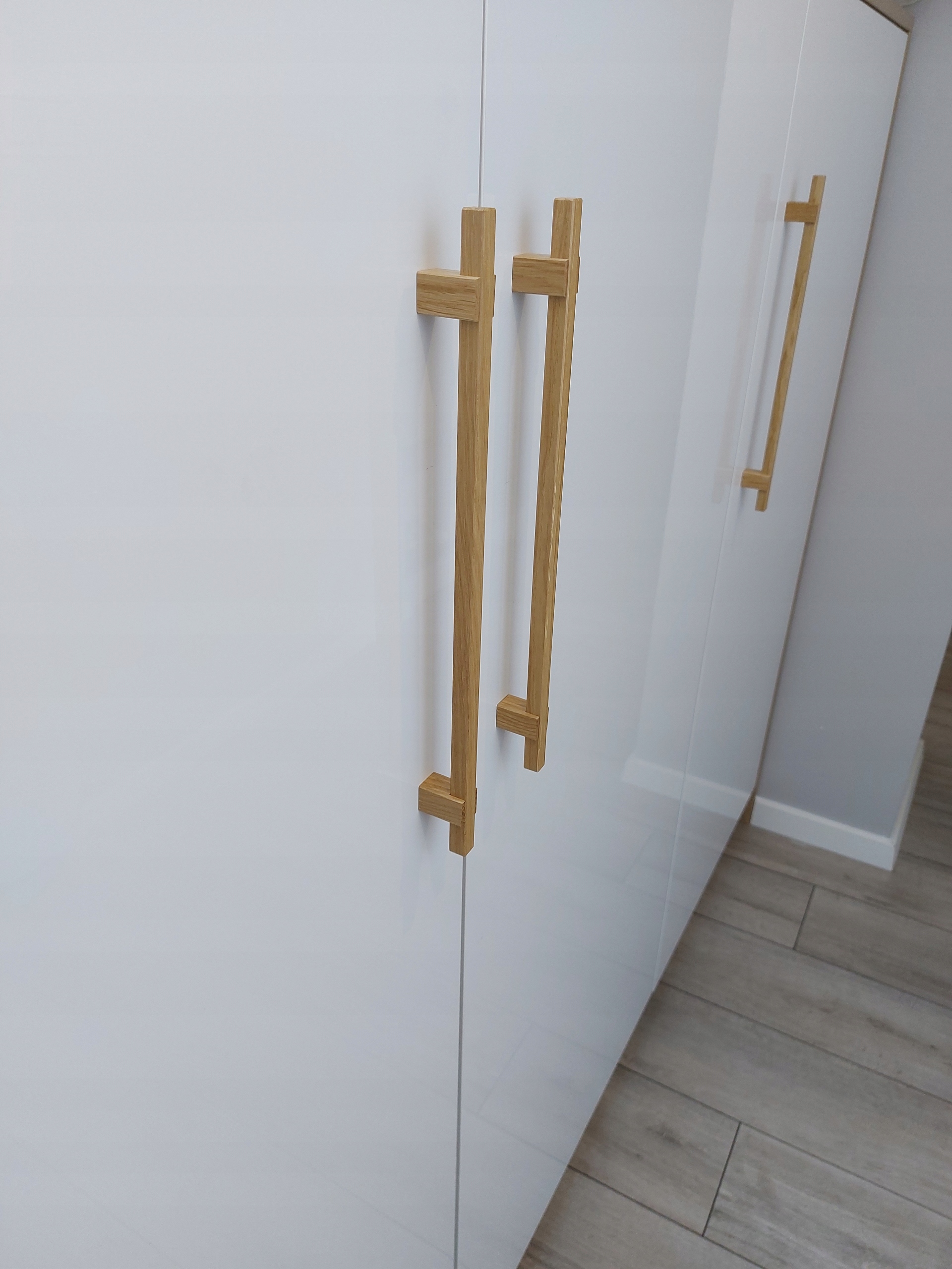 Ручка з масиву дуба, пофарбованого безбарвним лаком.