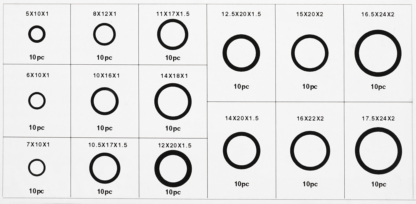 Набір мідних прокладок для семінарних програм. Весь упакований у зручну пластикову коробку з відсіками, що забезпечує порядок та належну сегрегацію розмірів прокладок.