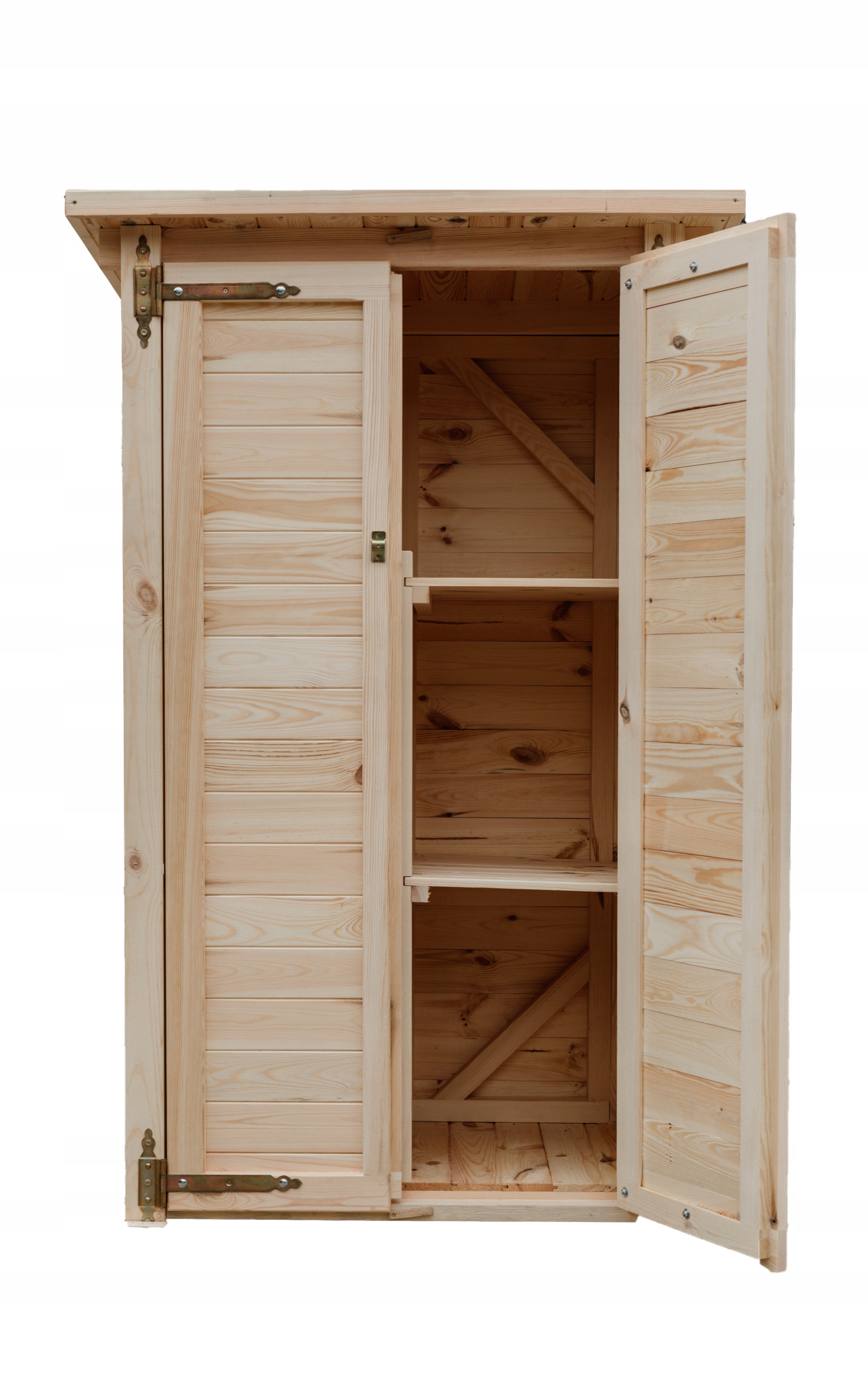 Наша садова шафа виготовлена з сосни, яка є натуральною та самовідновлюваною сировиною. Це означає, що цеекологічно чистий матеріал.