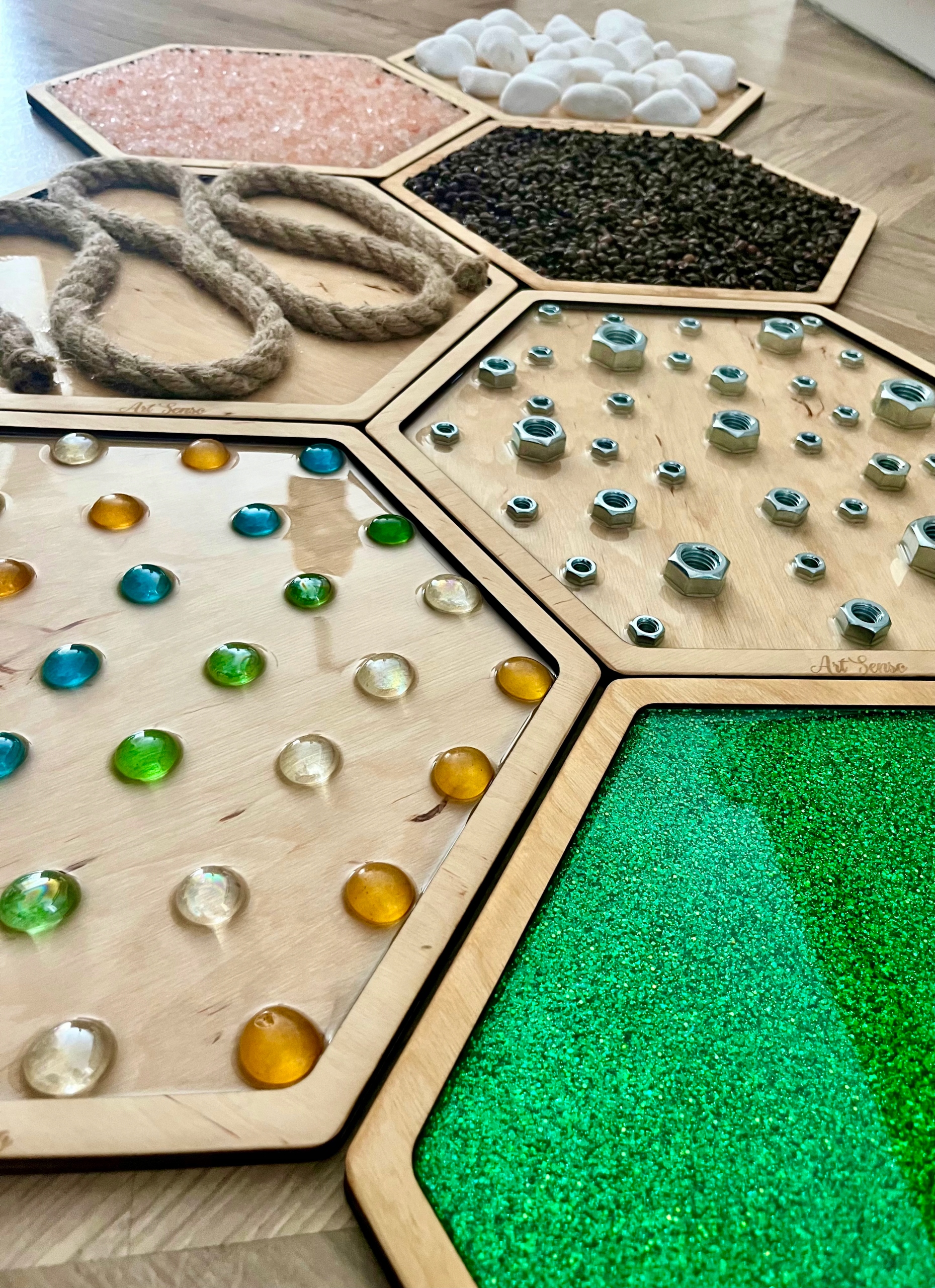 Дерев'яна сенсорна стежка, великий шестикутник Монтессорі, природний шестикутник