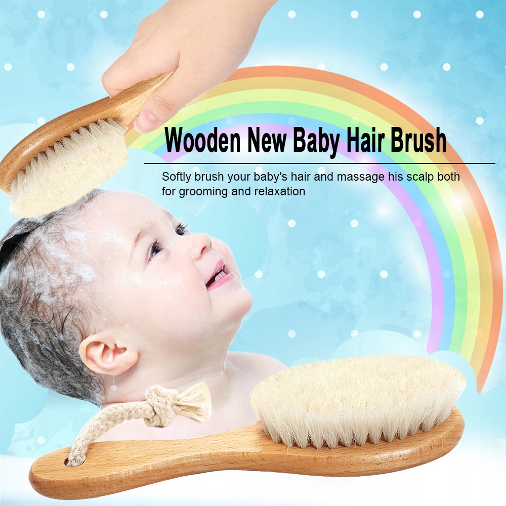 Дерев'яна щітка для новонароджених волосся гребінець м'яка шерсть