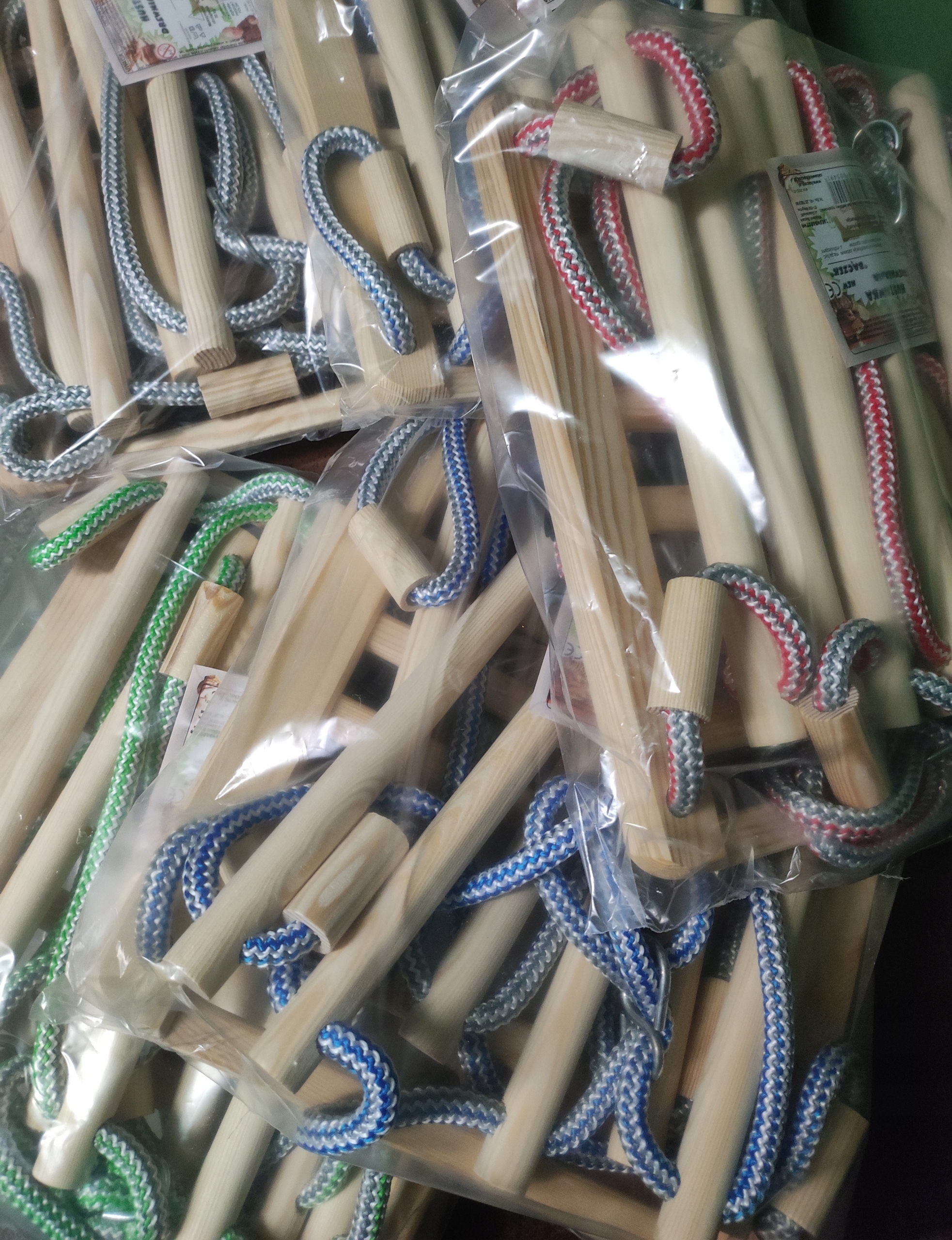 Дуже надійна робота. Мотузки закінчуються металевими кільцями, що робить монтаж швидким і легким. Діаметр колеса 4,5 см