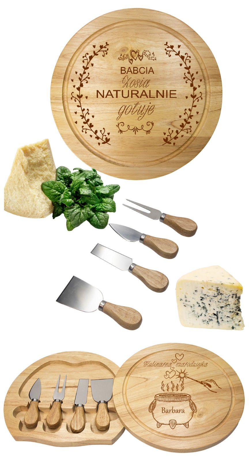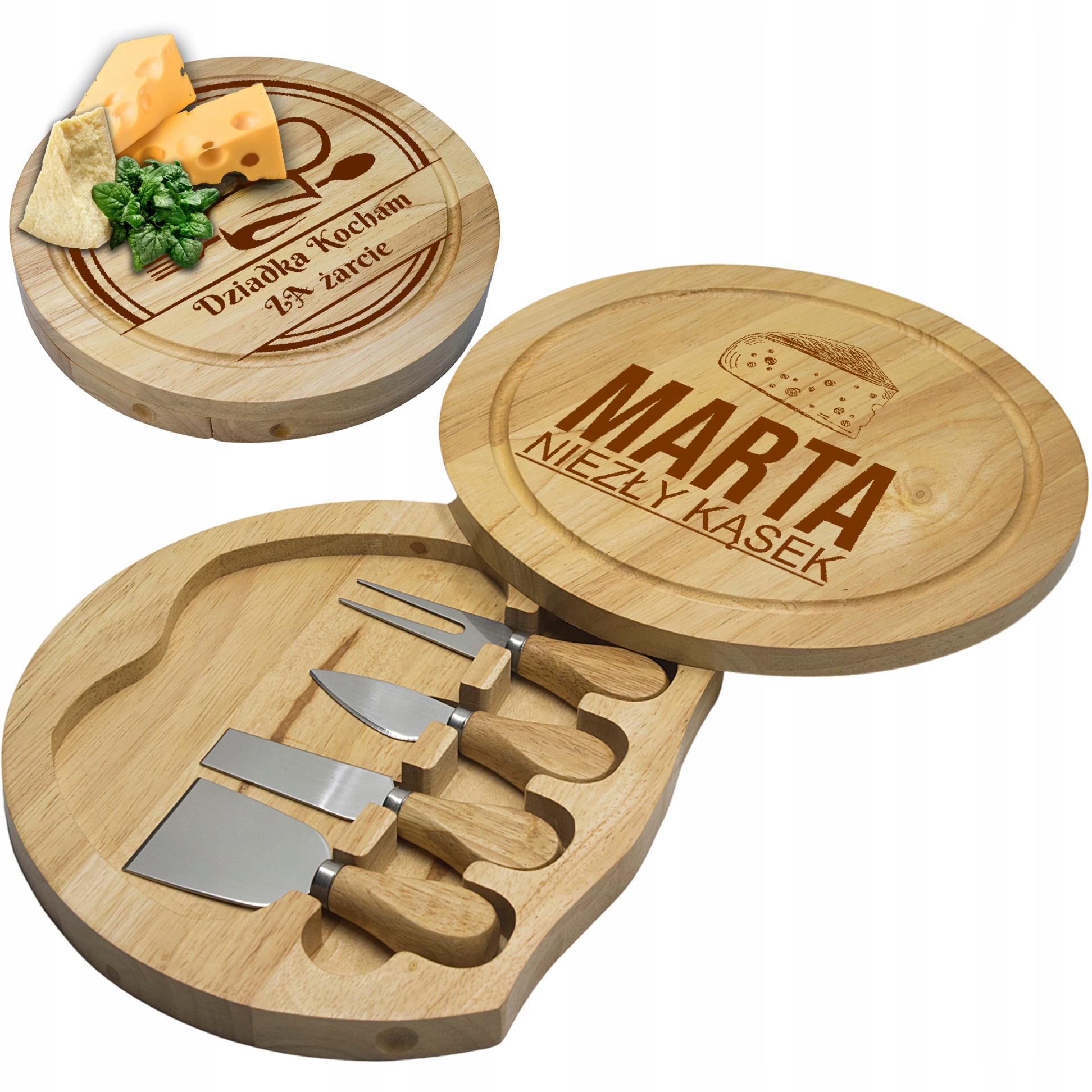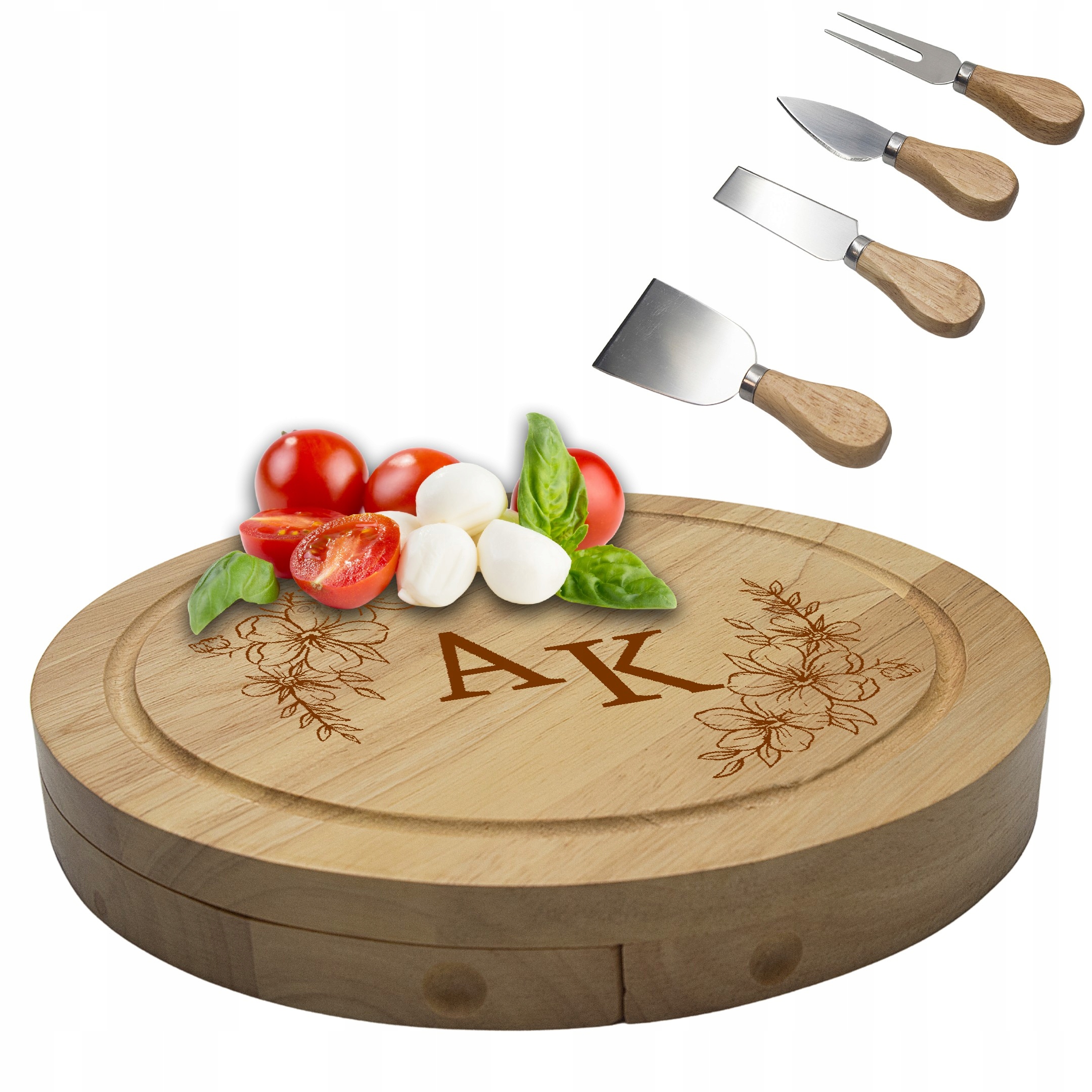 ДЕРЕВ'ЯНА СИРНА ДОШКА ДЛЯ ЗАКУСОК, ВЛАСНИЙ НАБІР ДЛЯ ГРАВІЮВАННЯ. НОЖІ В ШУХЛЯДІ