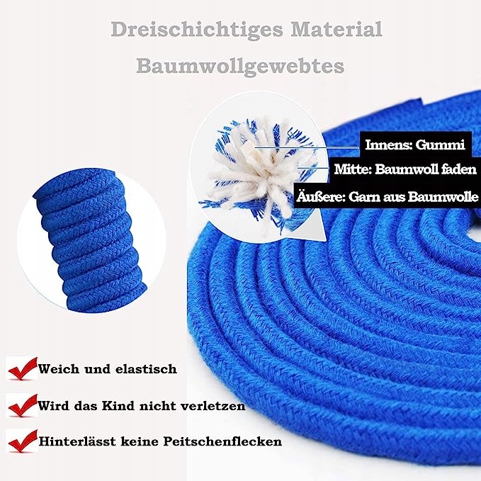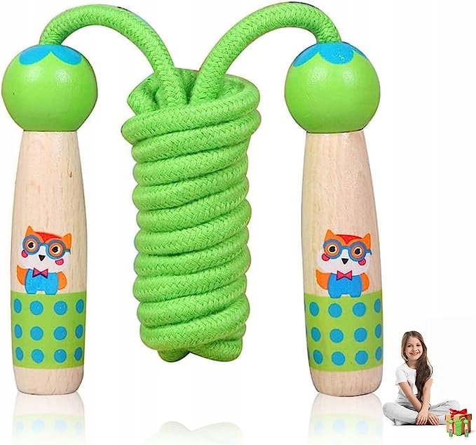 【Скакалка для дітей】Високоякісна скакалка для дітей, виготовлена з високої - якісний бавовняний матеріал, підходить для дітей, з дерев'яними ручками. Скакалку з дерев'яною ручкою непросто зав'язати, а матеріал м'який, тому дитина не засне під час тренувань зі скакалкою.