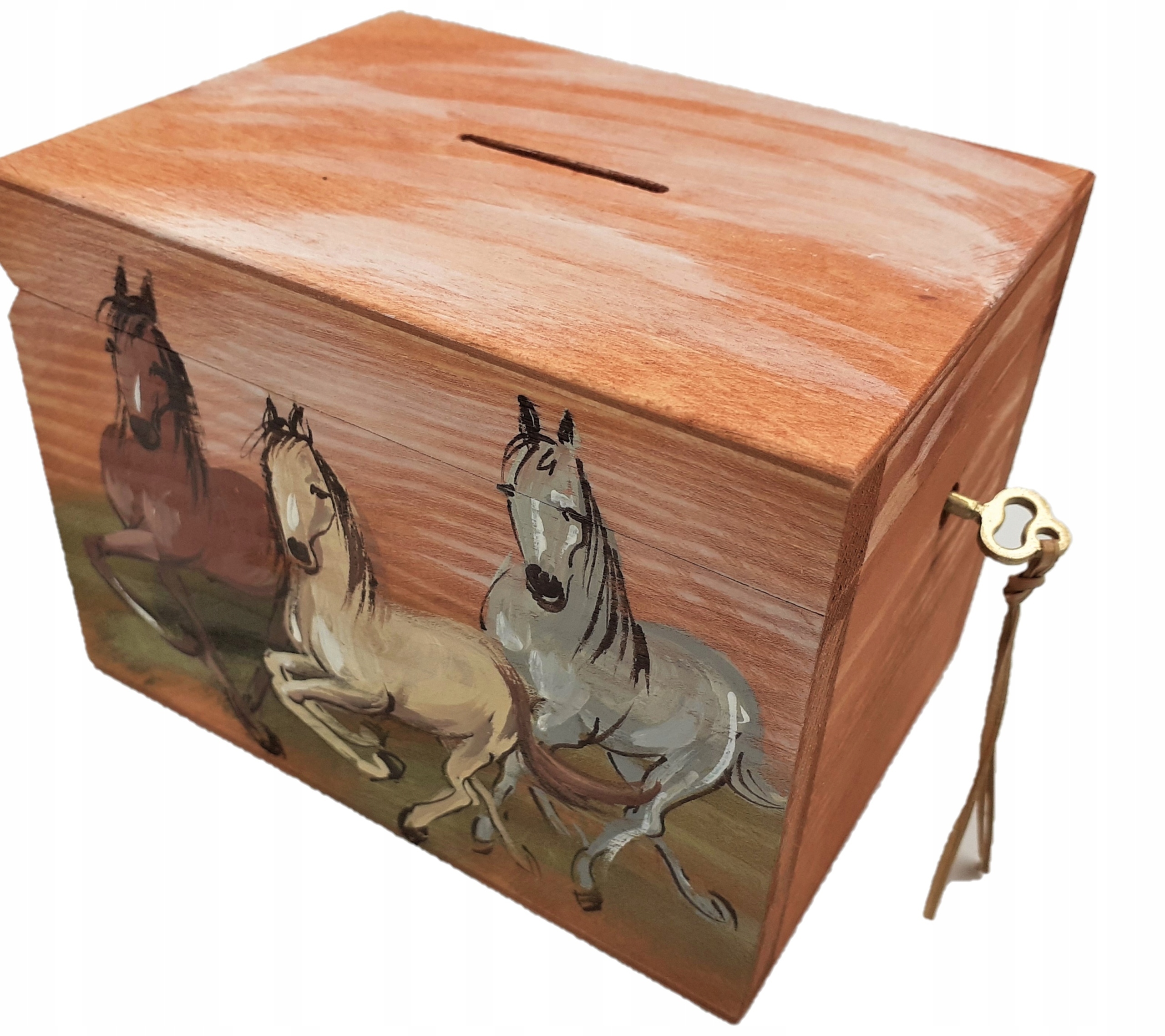 Дерев'яна скарбничка з ключем HAND MADE HORSES розписана