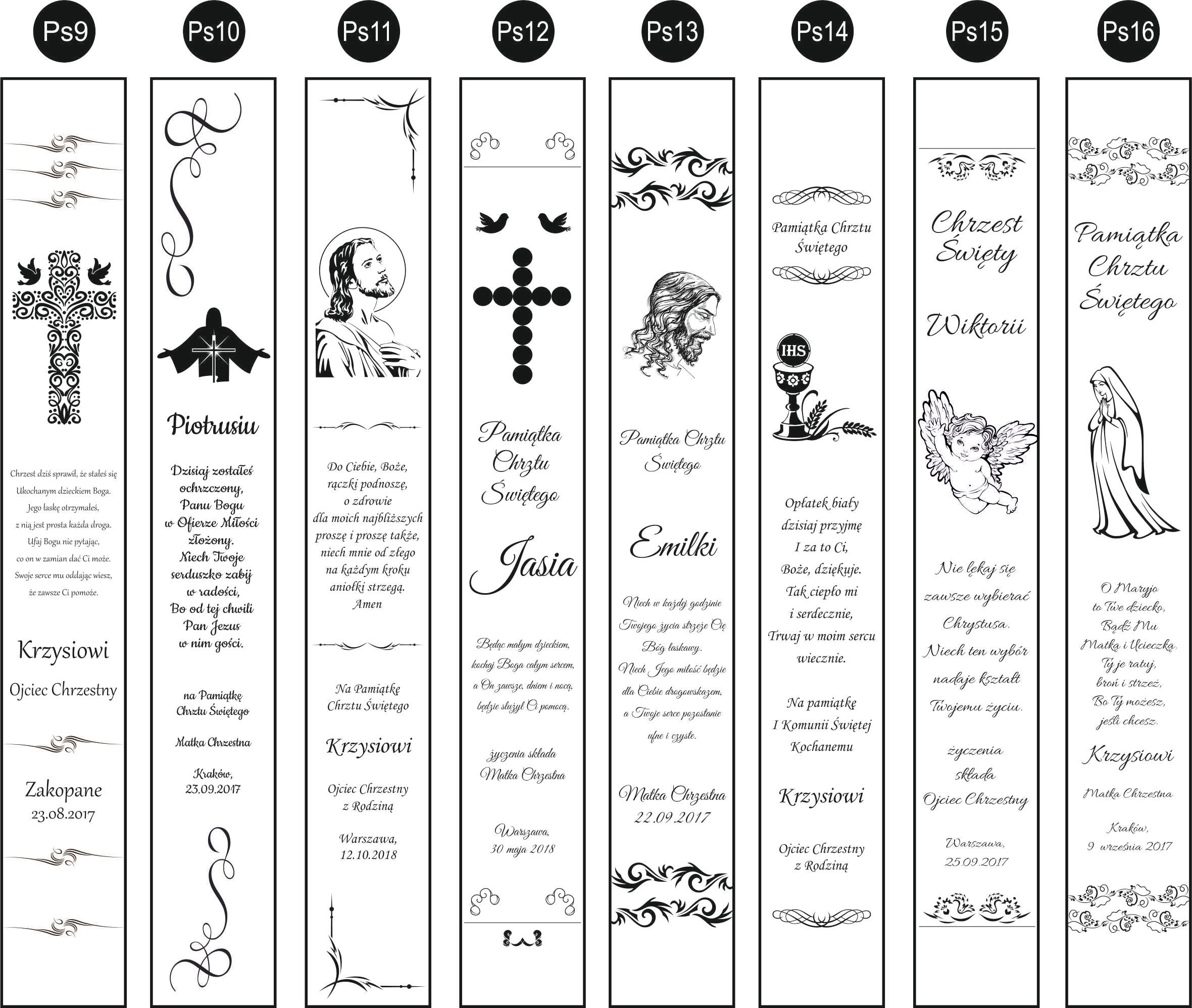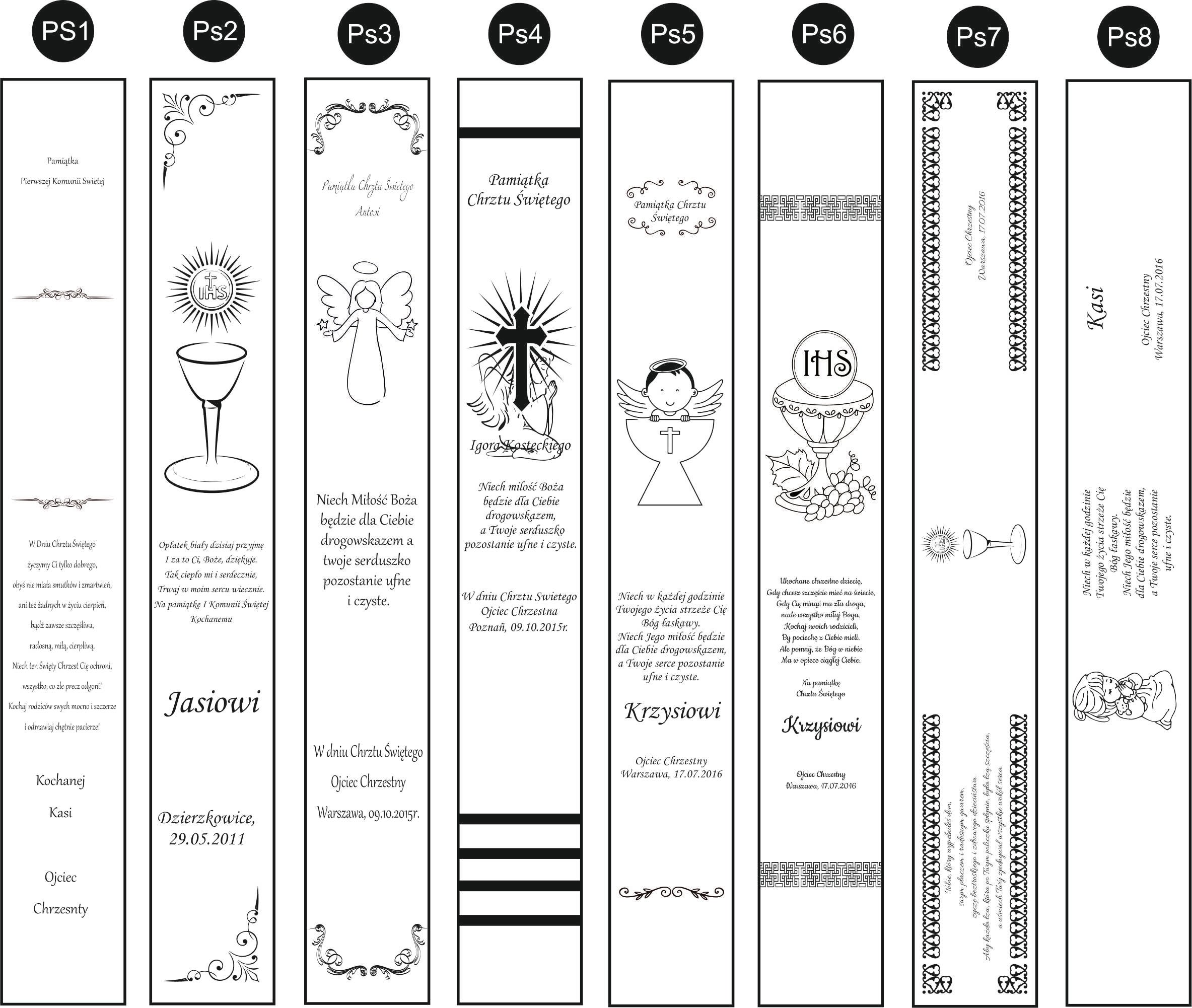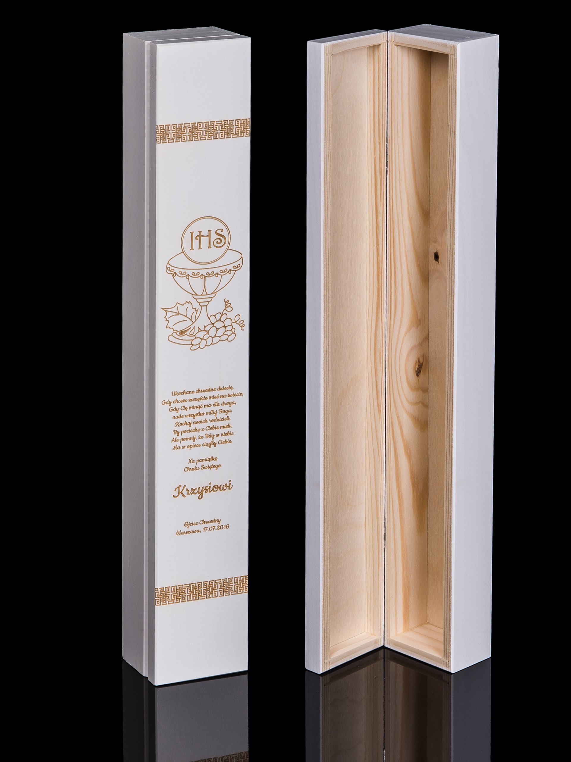 Щоб задовольнити очікування наших клієнтів, ми підготували для вас дерев'яну свічницю. Кожну упаковку можна персоналізувати, вибравши один із наведених нижче дизайнів або надіславши свій власний. Коробка ідеально підходить для зберігання свічки для хрещення або першого причастя.