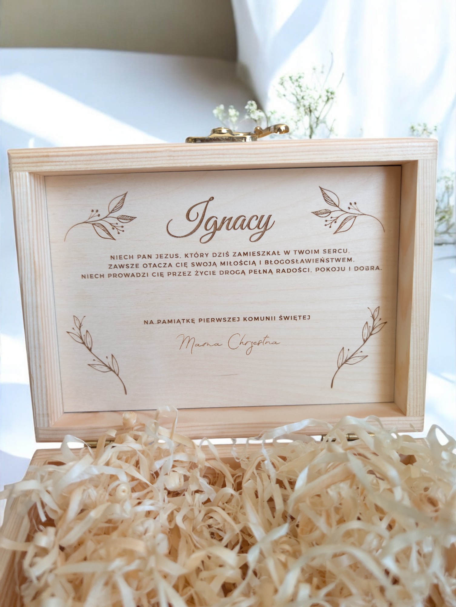 Шукаєте унікальний подарунок до Першого Святого Причастя? Наша елегантна персоналізована коробка — ідеальний сувенір, у який можна вмістити шоколад, гроші чи інші дрібниці.
