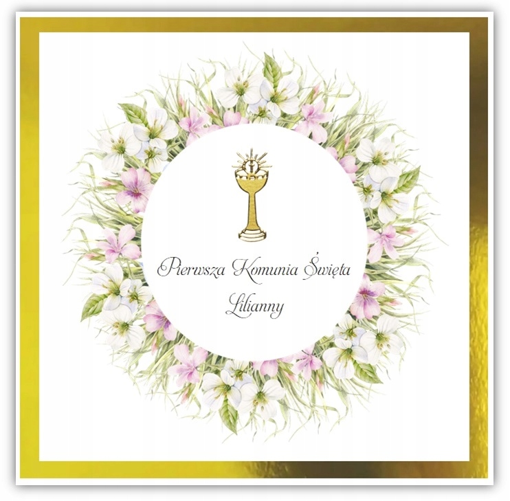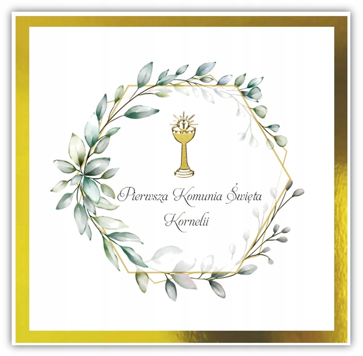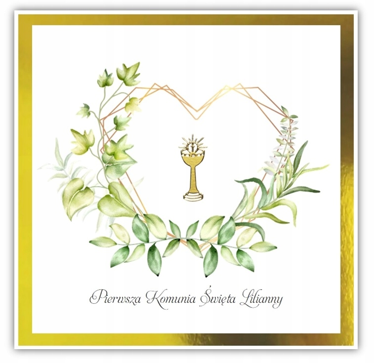 - зверху є золота рамка та красива графіка у вигляді вінка та золотої чаші з хостією