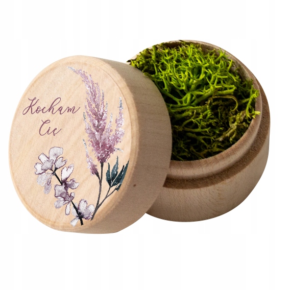 Дерев'яна скринька з принтом «I love you» для обручок, обручок або маленького подарунка, наповнена зеленим мохом