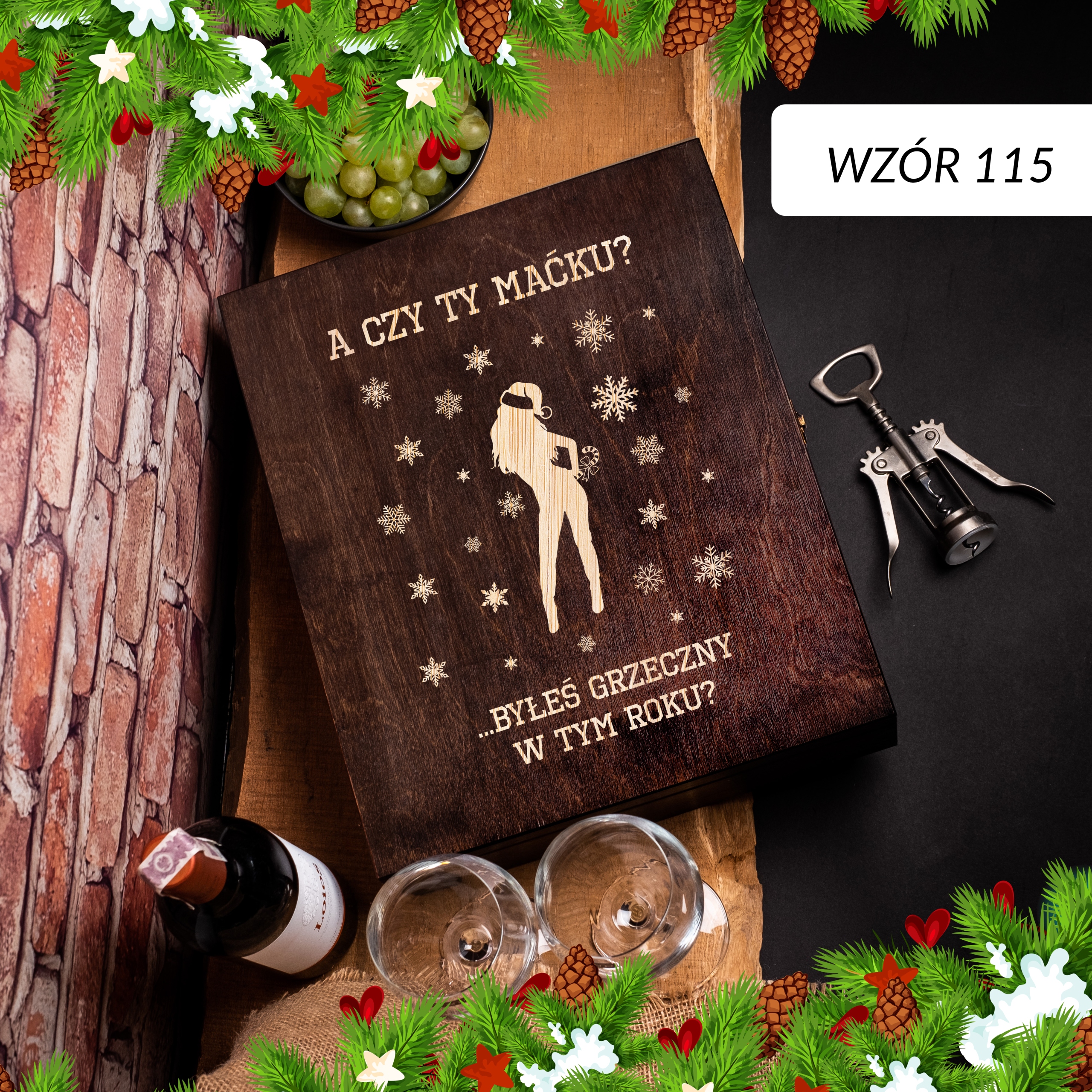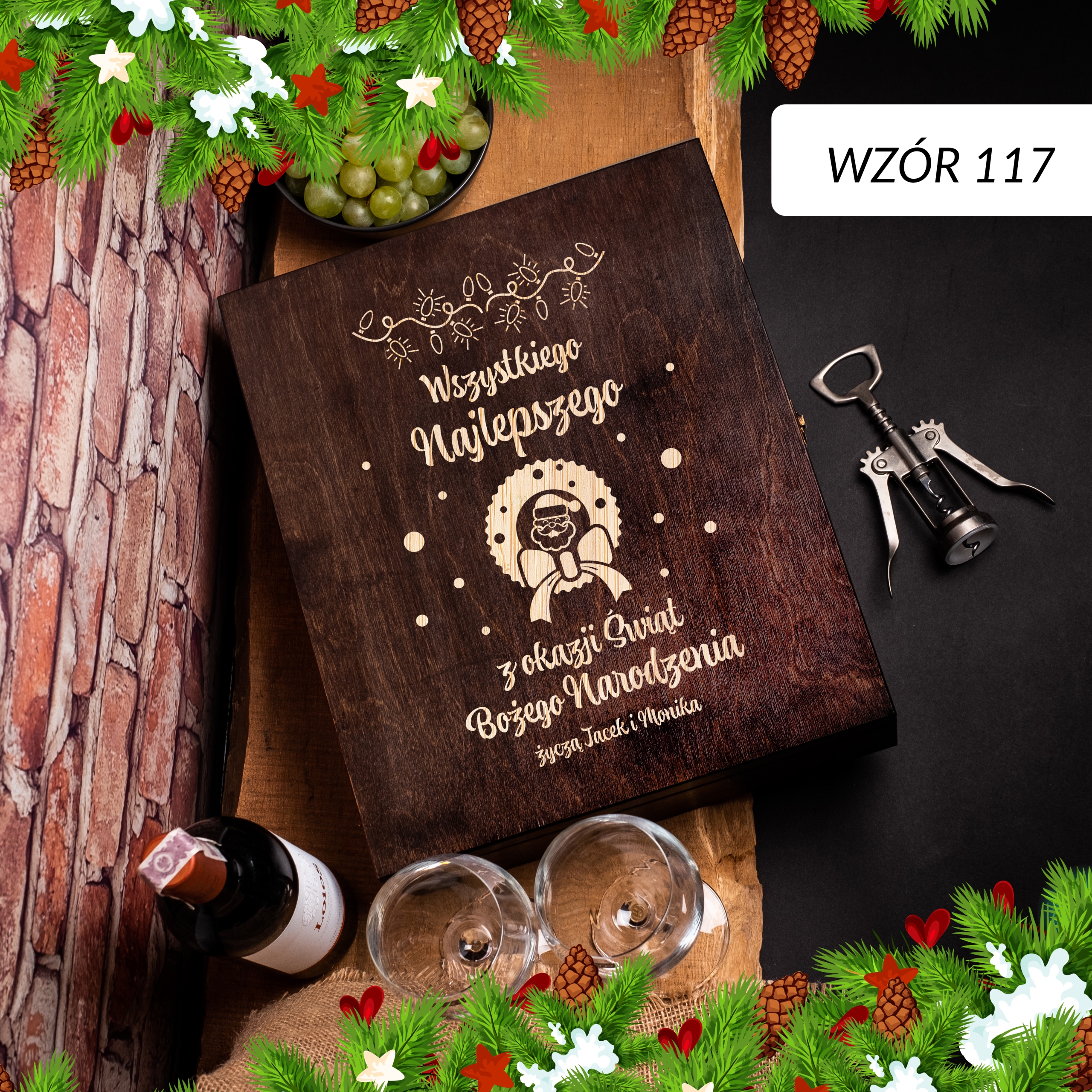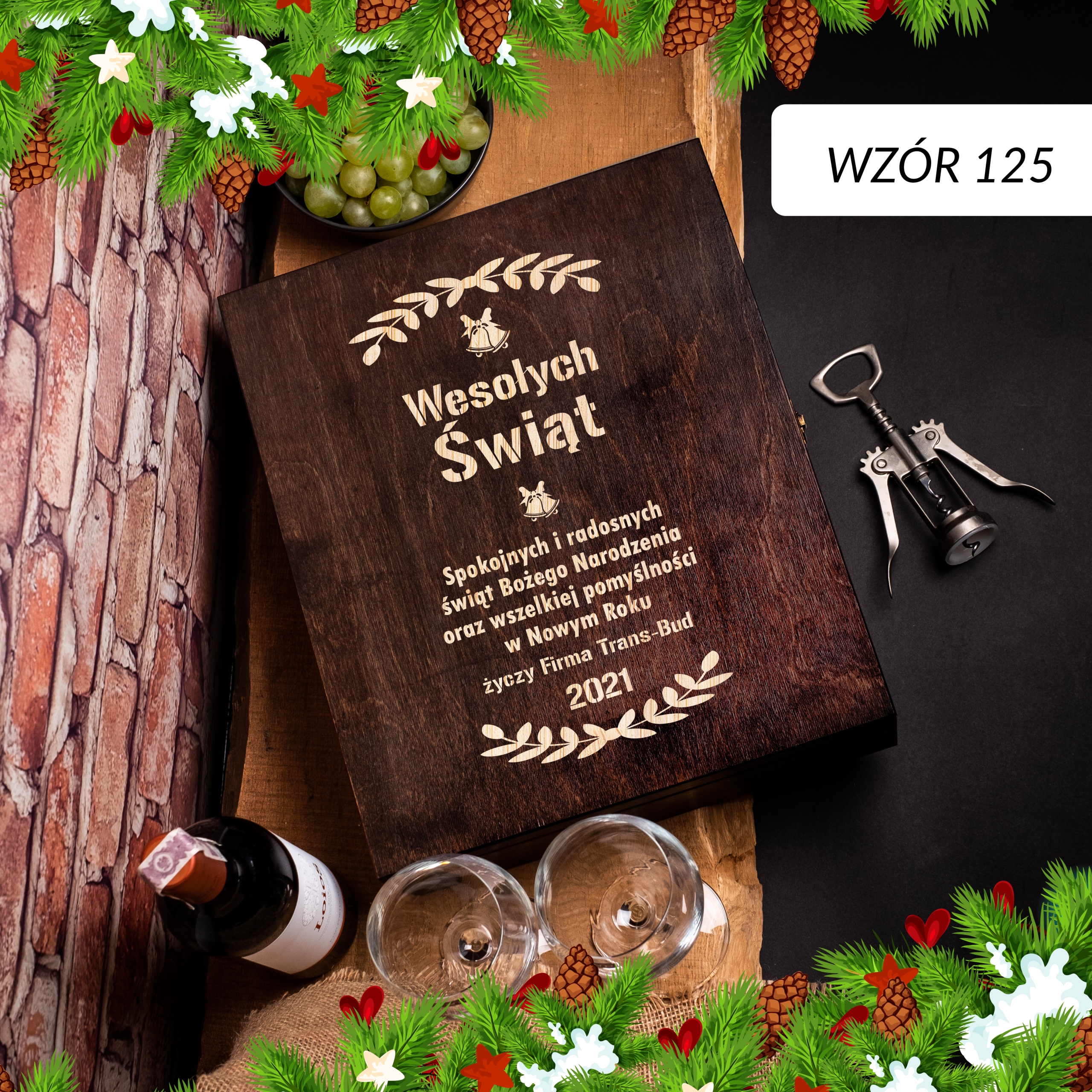 ПРАКТИЧНА ШКАТУЛКА ДЛЯ АЛКОГОЛЬНОГО З ГРАВІЮВАННЯМ - РІЗДВЯНИЙ ПОДАРУНОК