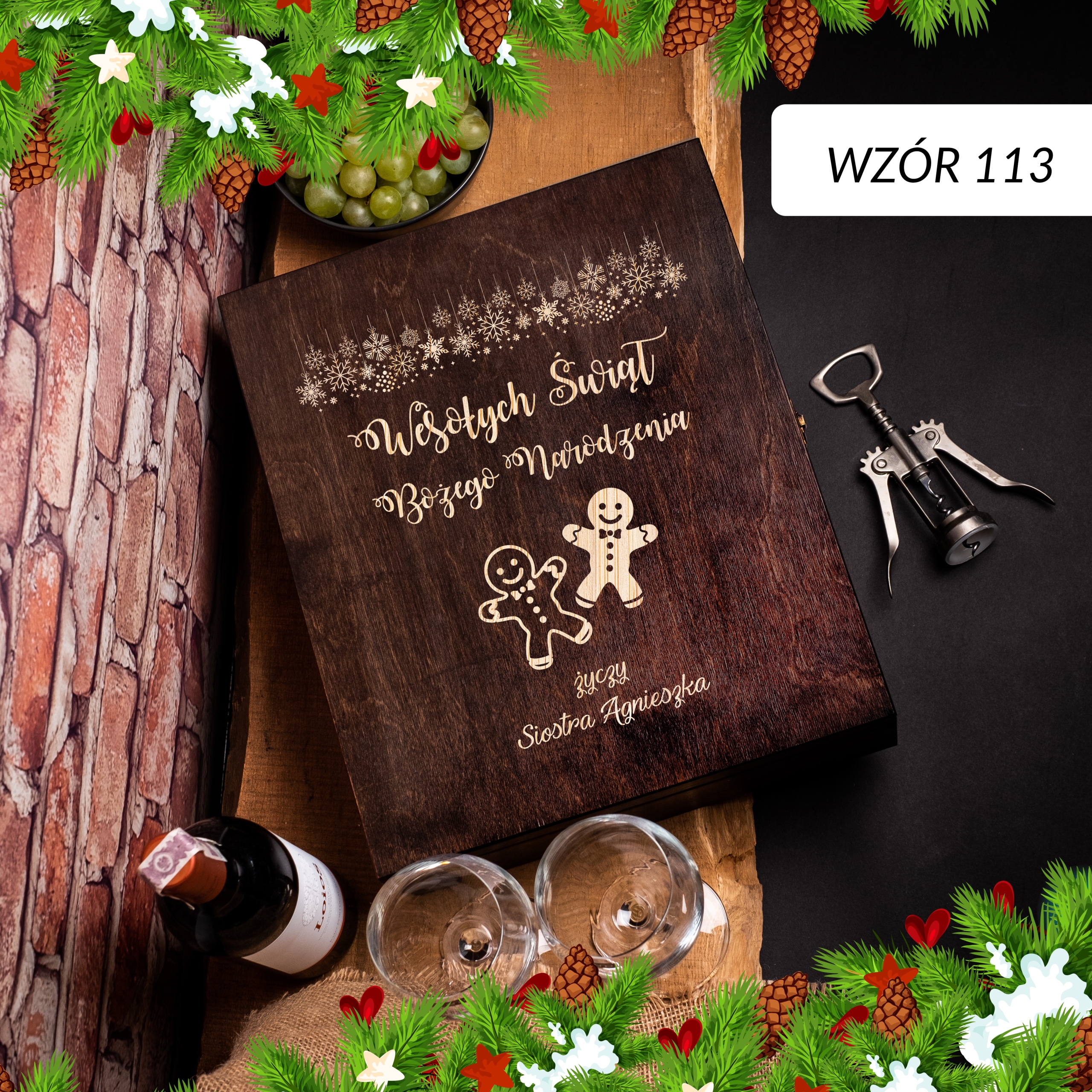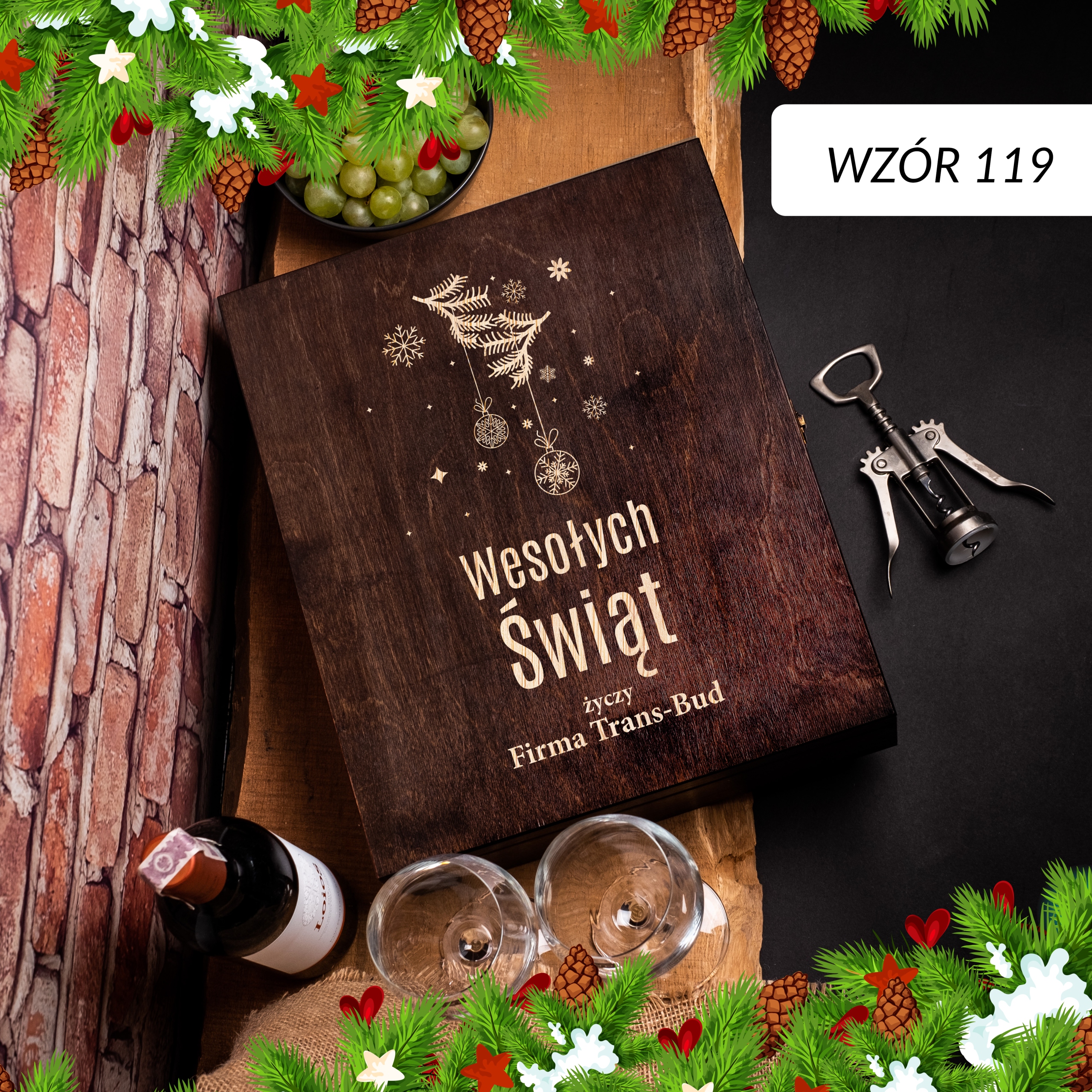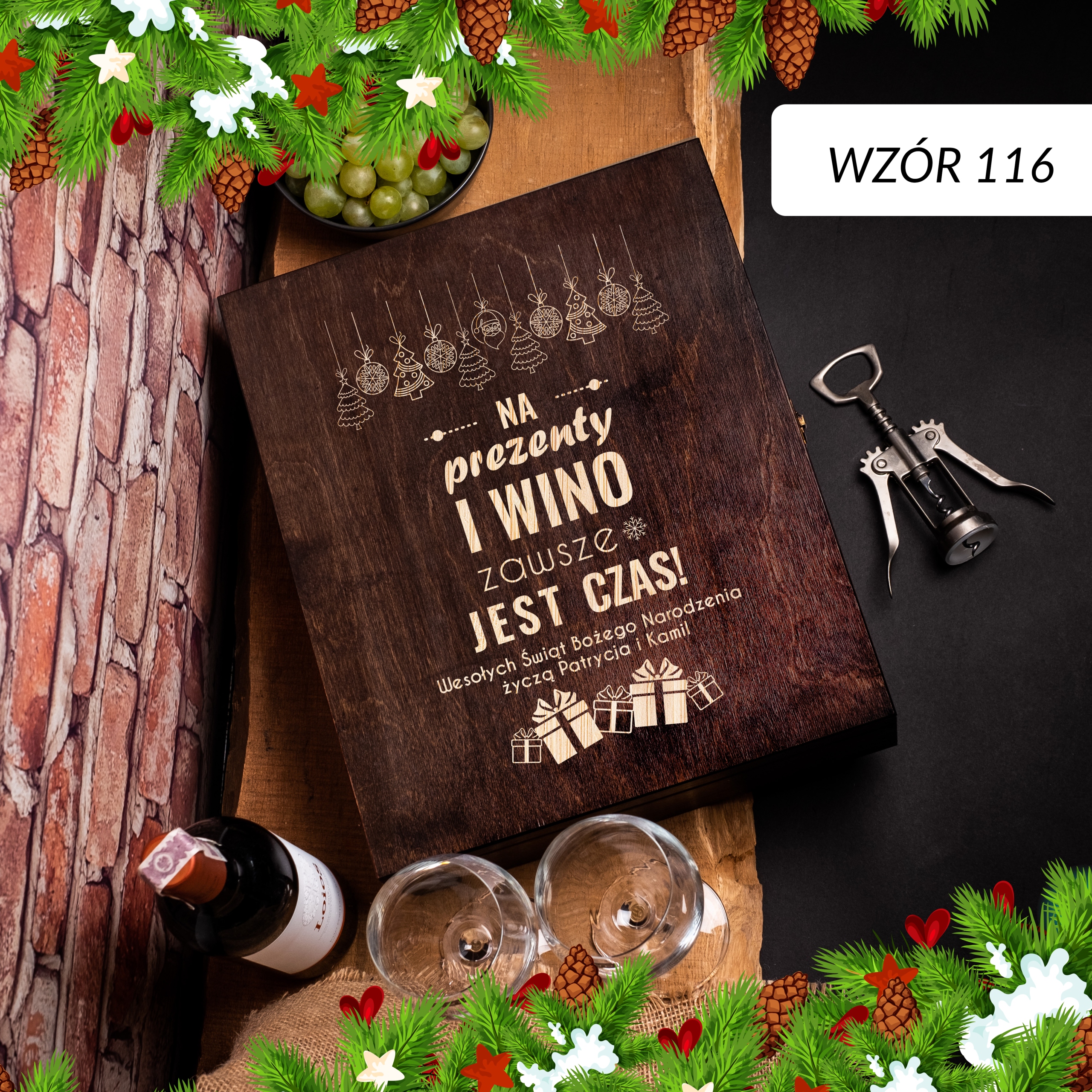 ПРАКТИЧНА ШКАТУЛКА ДЛЯ АЛКОГОЛЬНОГО З ГРАВІЮВАННЯМ - РІЗДВЯНИЙ ПОДАРУНОК