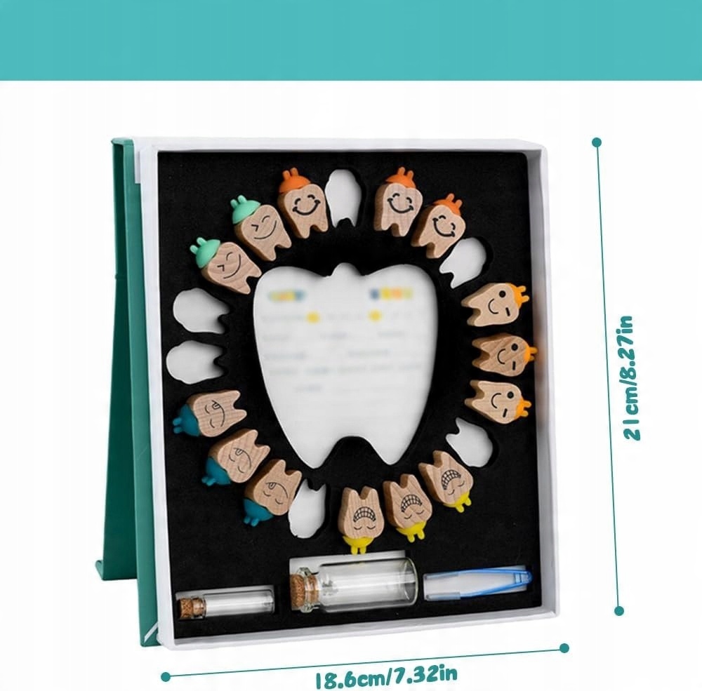 Подаруйте своїй дитині унікальний сувенір з періоду прорізування молочних зубів разом з нашою дерев'яною коробочкою для молочних зубів. Ця елегантна та функціональна коробка була розроблена, щоб батьки могли зберігати та зберігати будь-який маленький зуб, який випадає з ясен дитини. Ідеально підходить як подарунок на перший зубок, ця коробка не тільки захищає сувеніри, але й створює емоційну та особисту колекцію, яка стане цінним спогадом про дитинство.