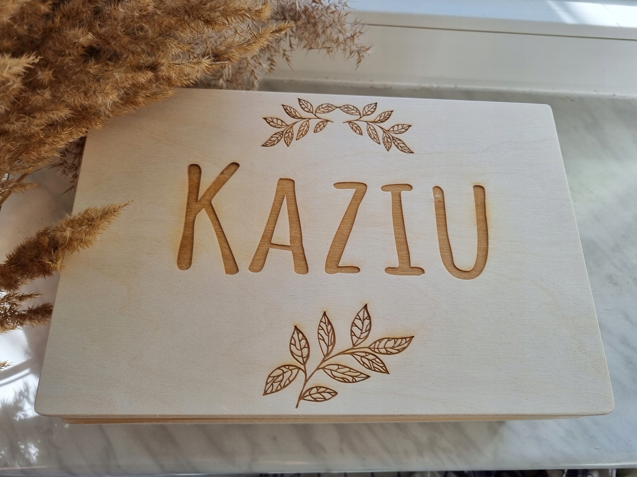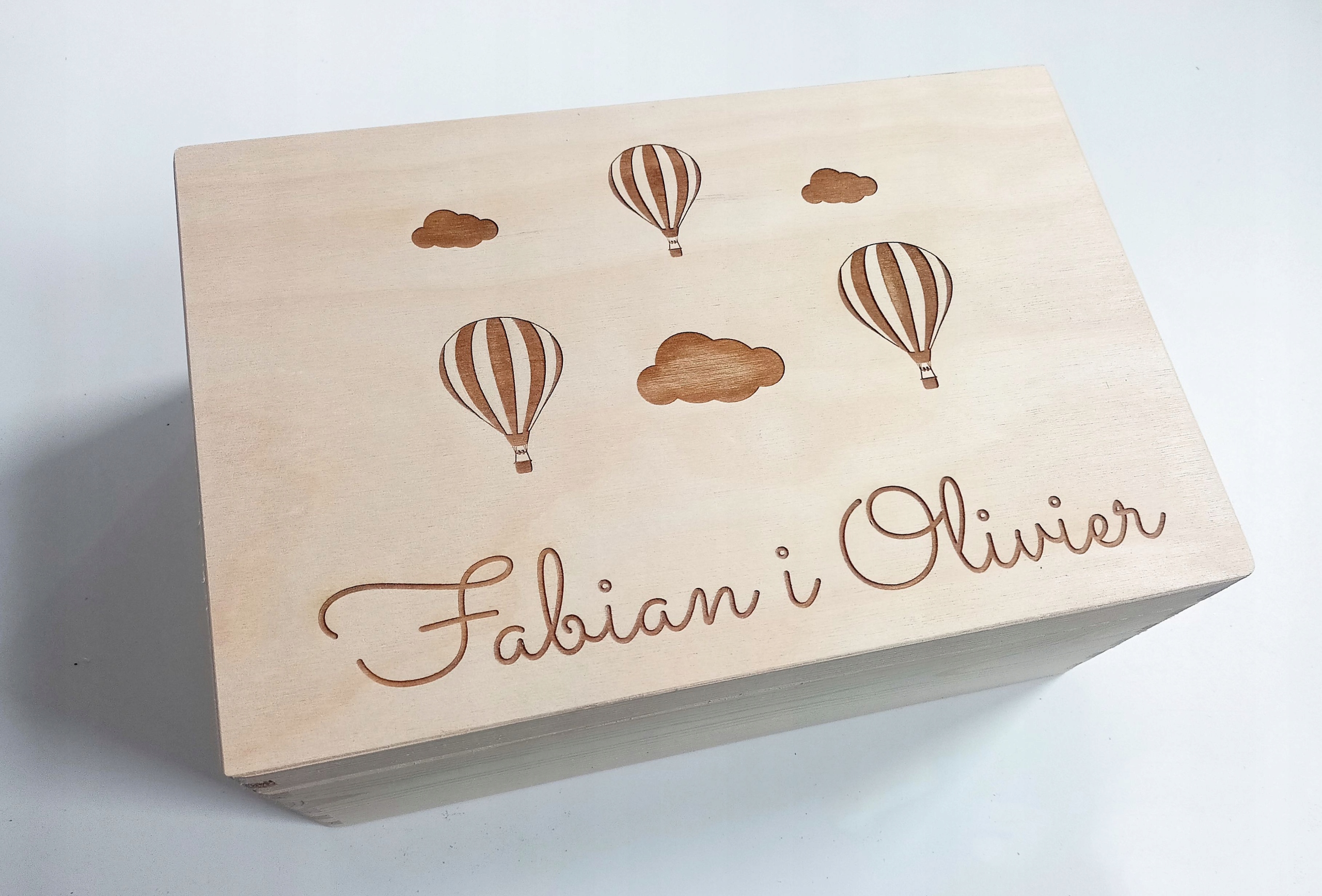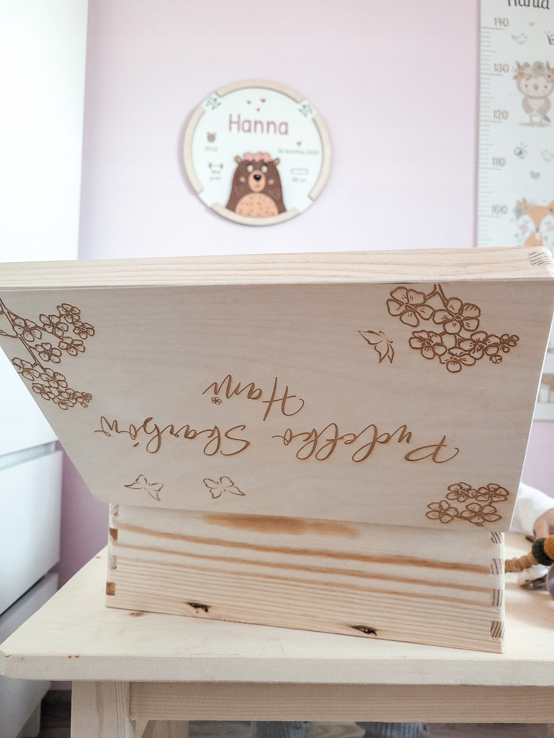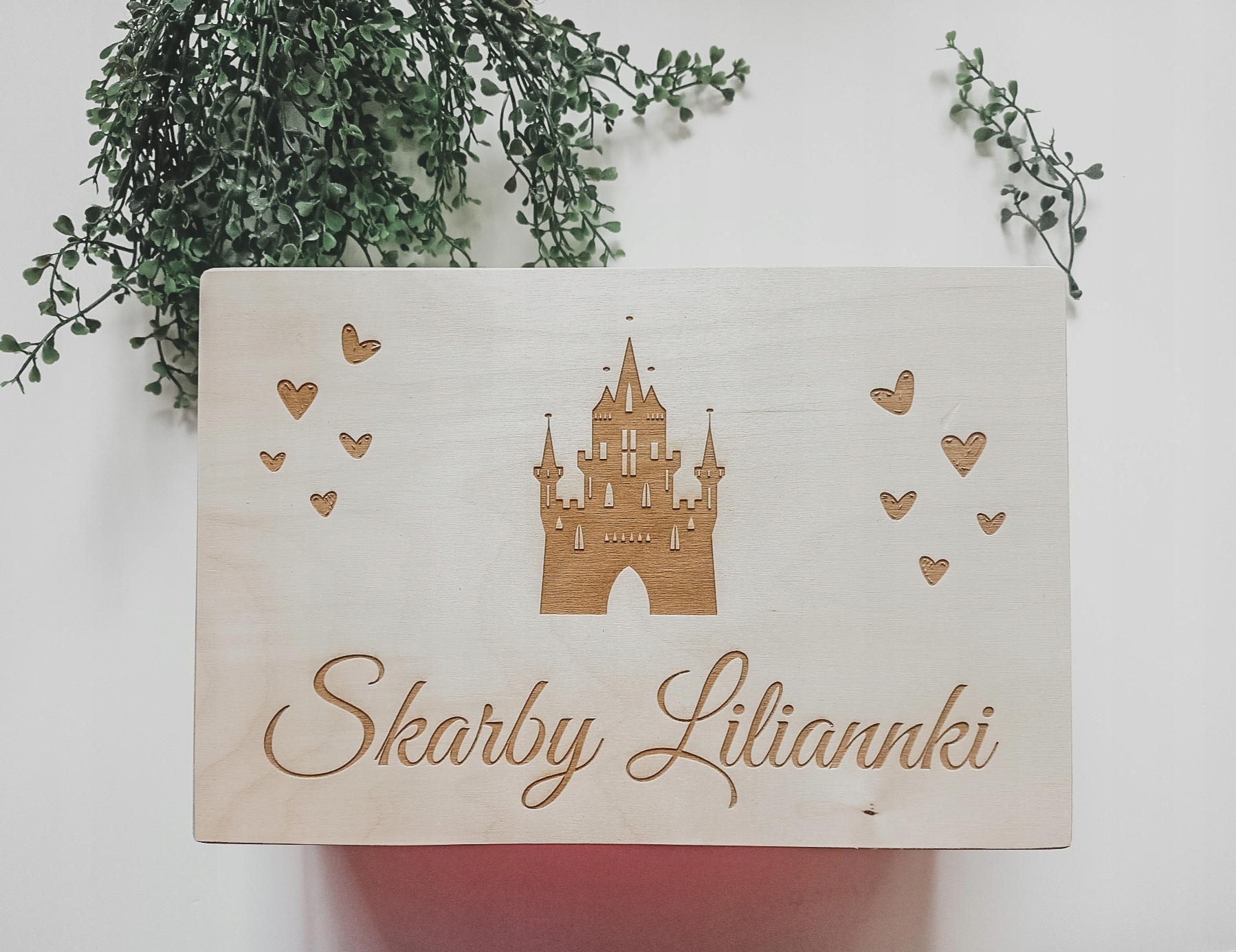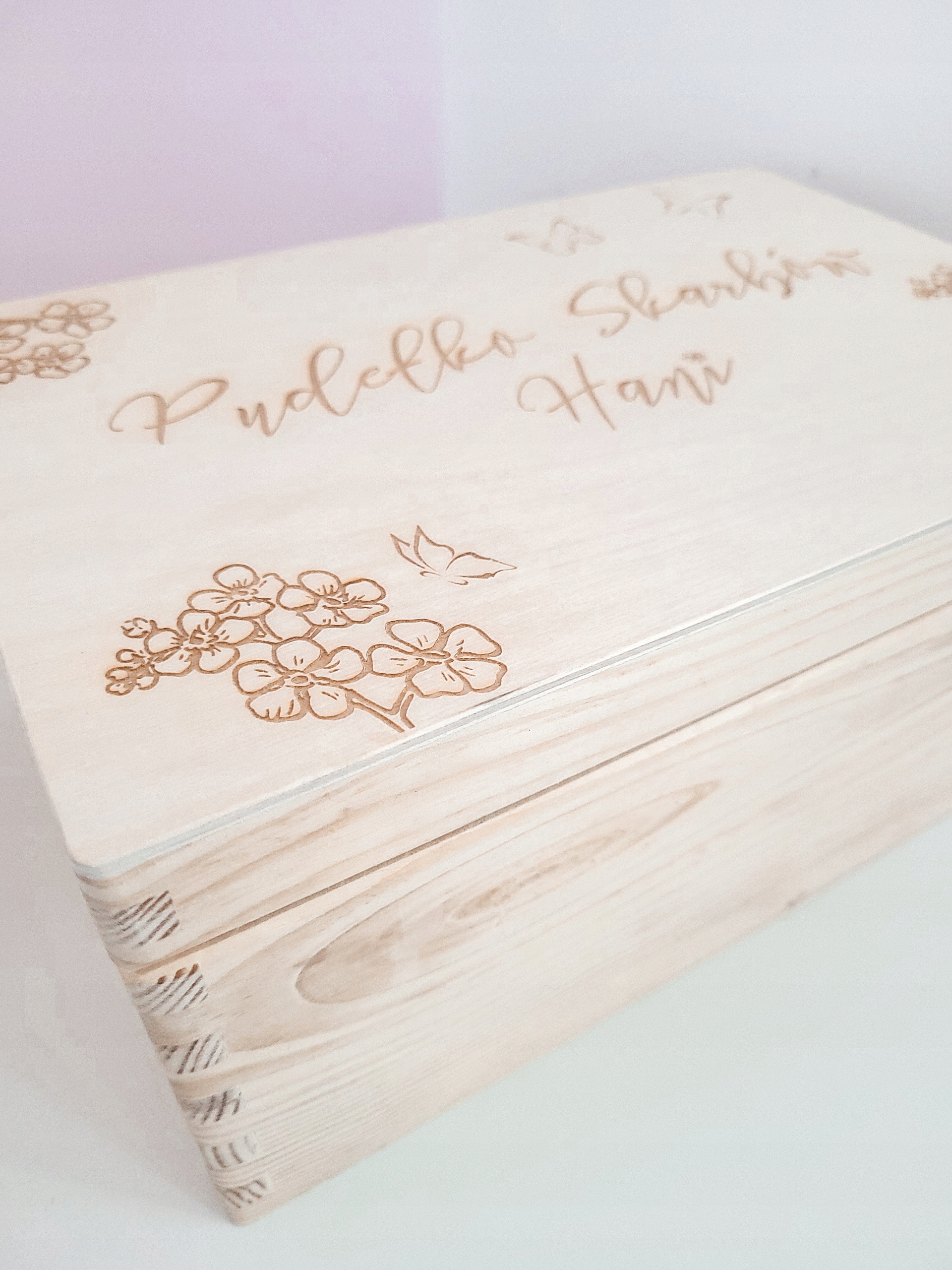 Дерев'яна скринька зі скарбницею спогадів з іменем дитини